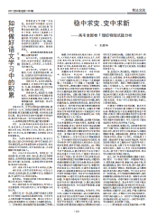 稳中求变、变中求新 —高考全国卷 1 理综物理试题分析   摘要:高考理综物理试题源于教材,高于教 材,又不拘泥于教材,试题具有突出主干、情景求新、新而不难、新而不偏、活而不怪、推陈出新 的特点,选择题难度稳定;实验题贴近生活;计算题开放可控;选做题保持稳定;具有“稳中求变、变中求新、新中求活、体现课改”的特点。 关键词:高考理综物理分析 试卷结构分析  题型分析 考点分析 备考指导 2017 年高考全国卷 1 理综物理部分采用 了“8222”命题模式,即 5 个单选 3 个多项选择题,2 个实验题,2 个计算题,2 个选做题(选 1个模块作答)。物理试题充分体现了《...