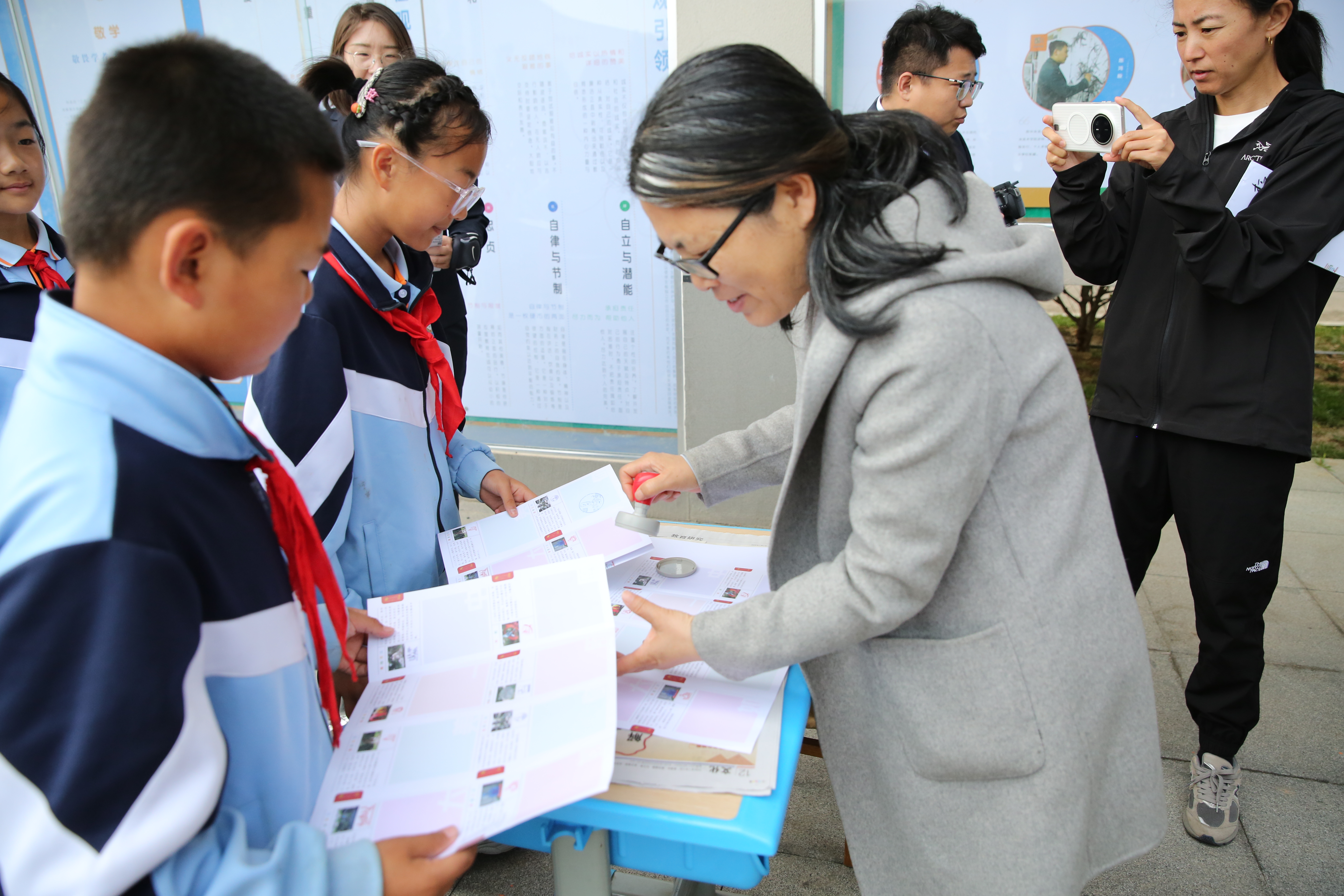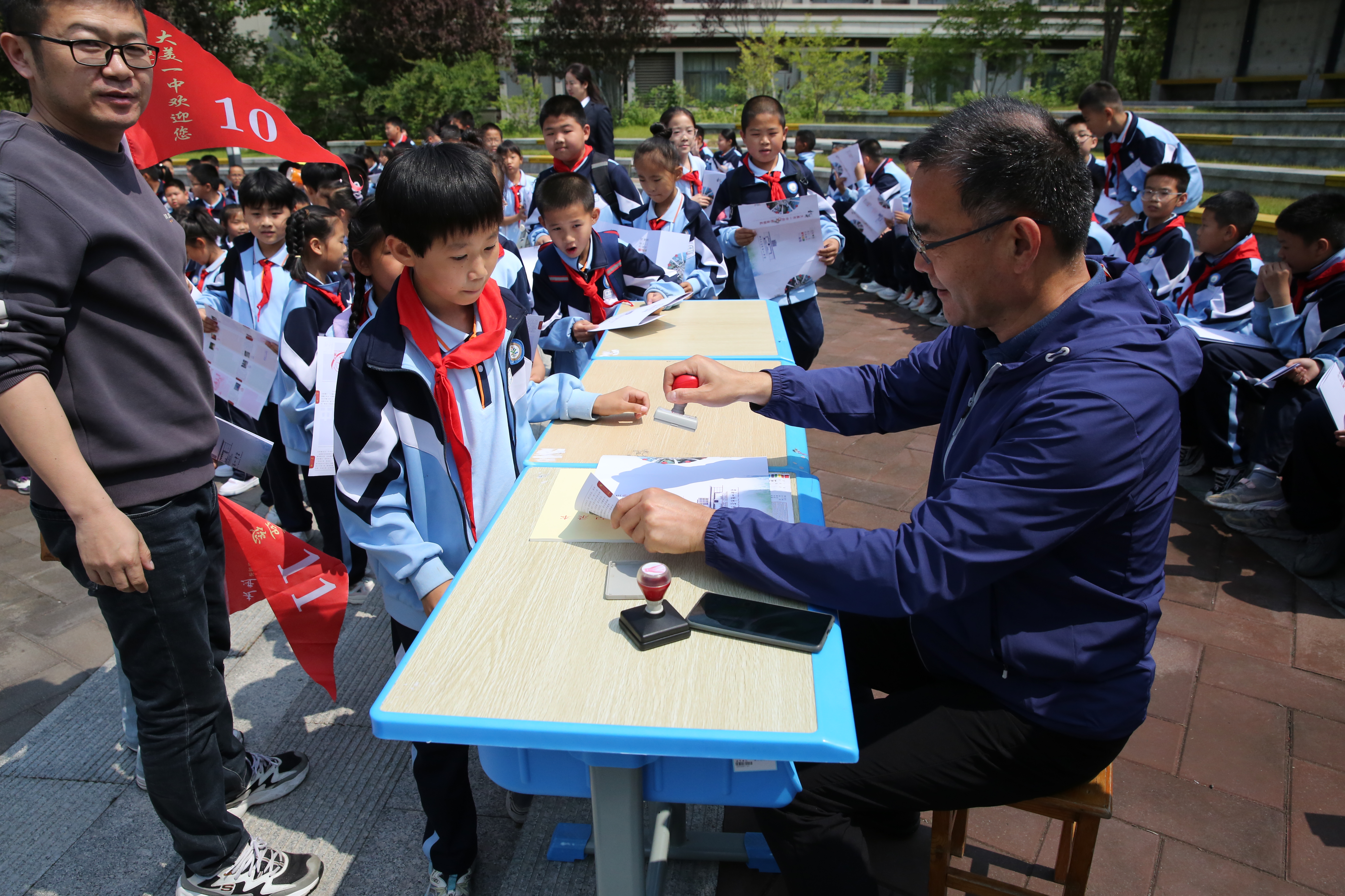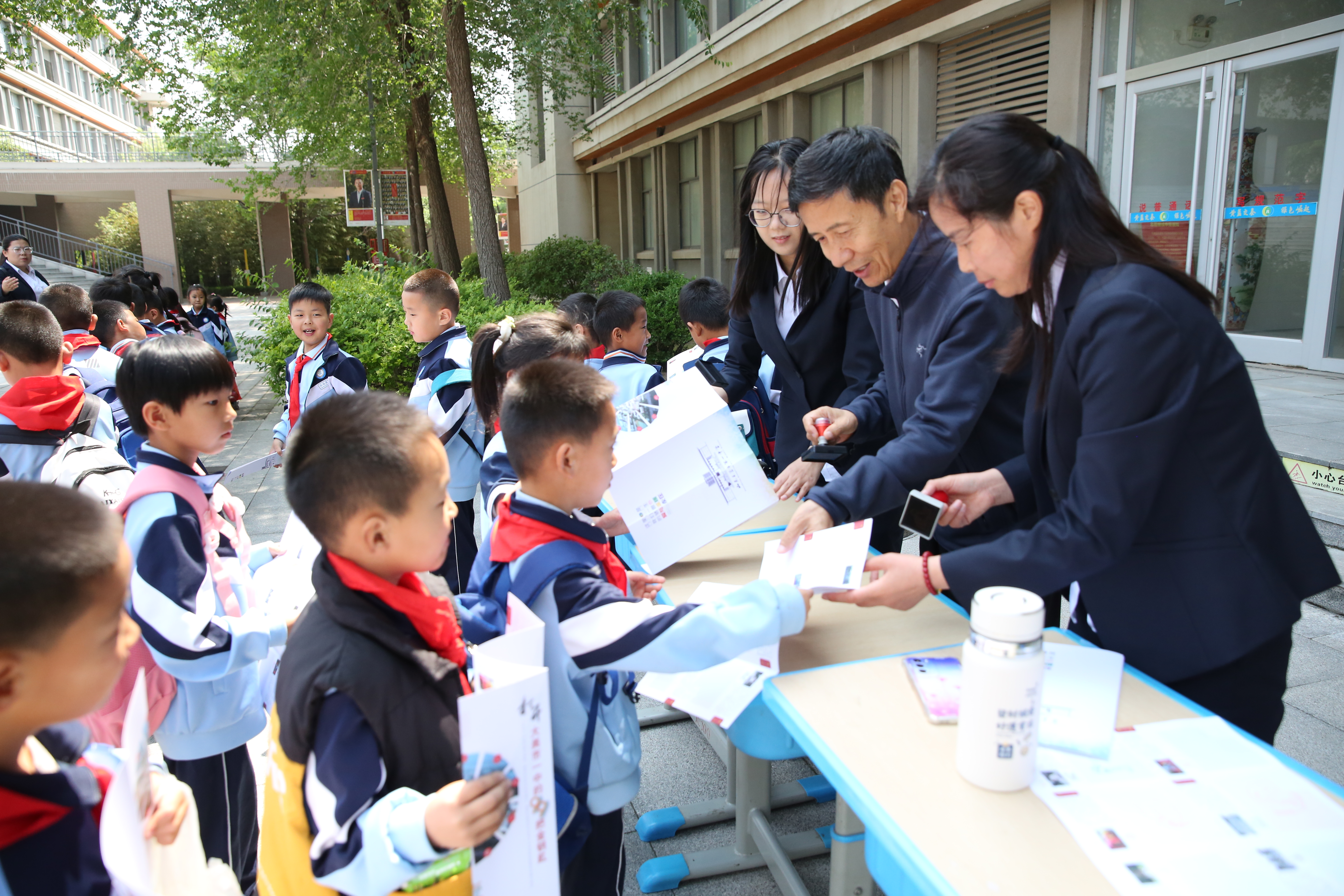 市一中校门前成为研学第一站。孩子们手持研学手册,稚嫩的脸庞映着朝阳的光辉。