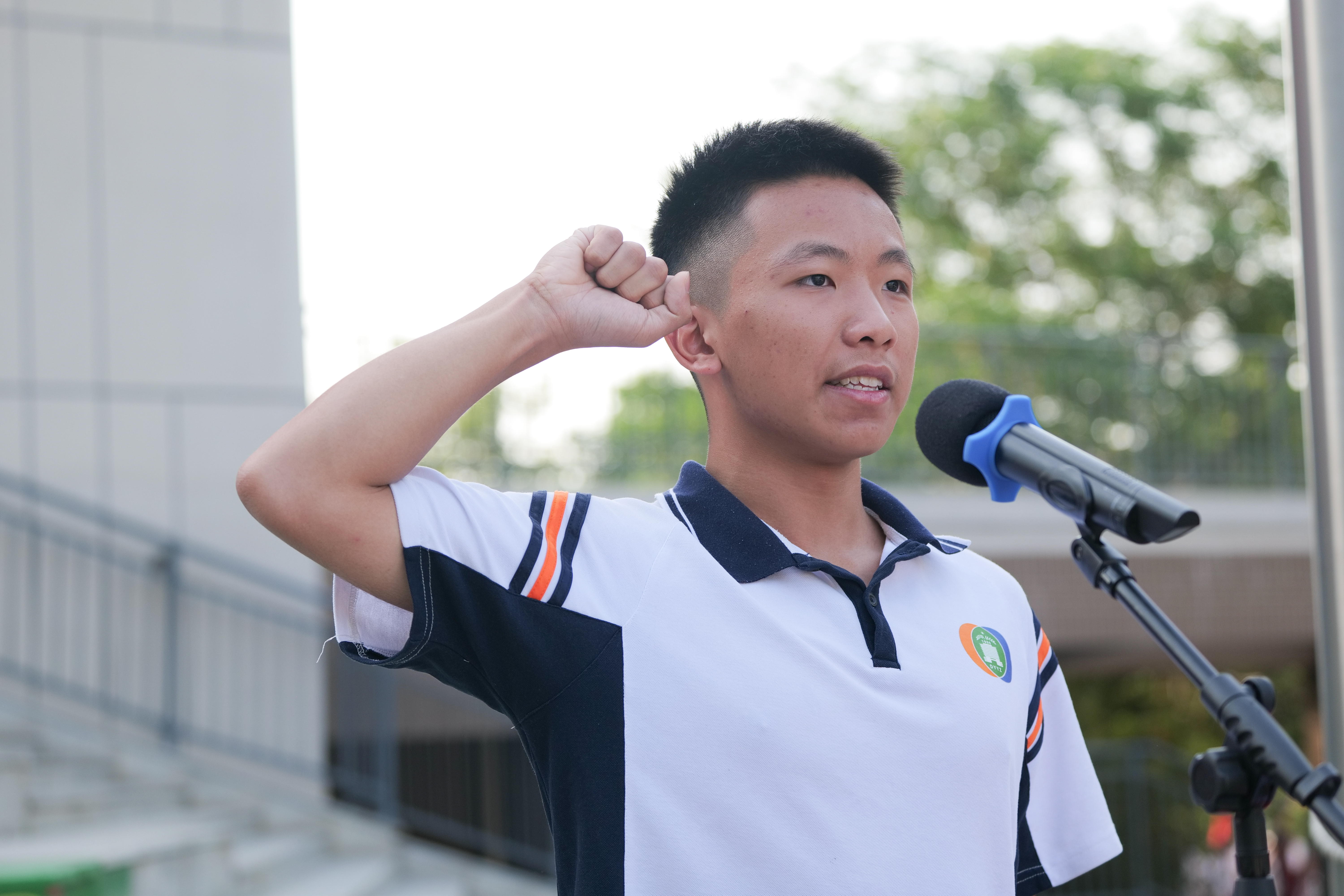 面对三百多个日夜的冲刺,面对2026年高考的号角,2023级全体新高三学子在40班吴必康同学的带领下,立下铿锵誓言,高亢嘹亮的青春呐喊在升旗广场上空回响。
