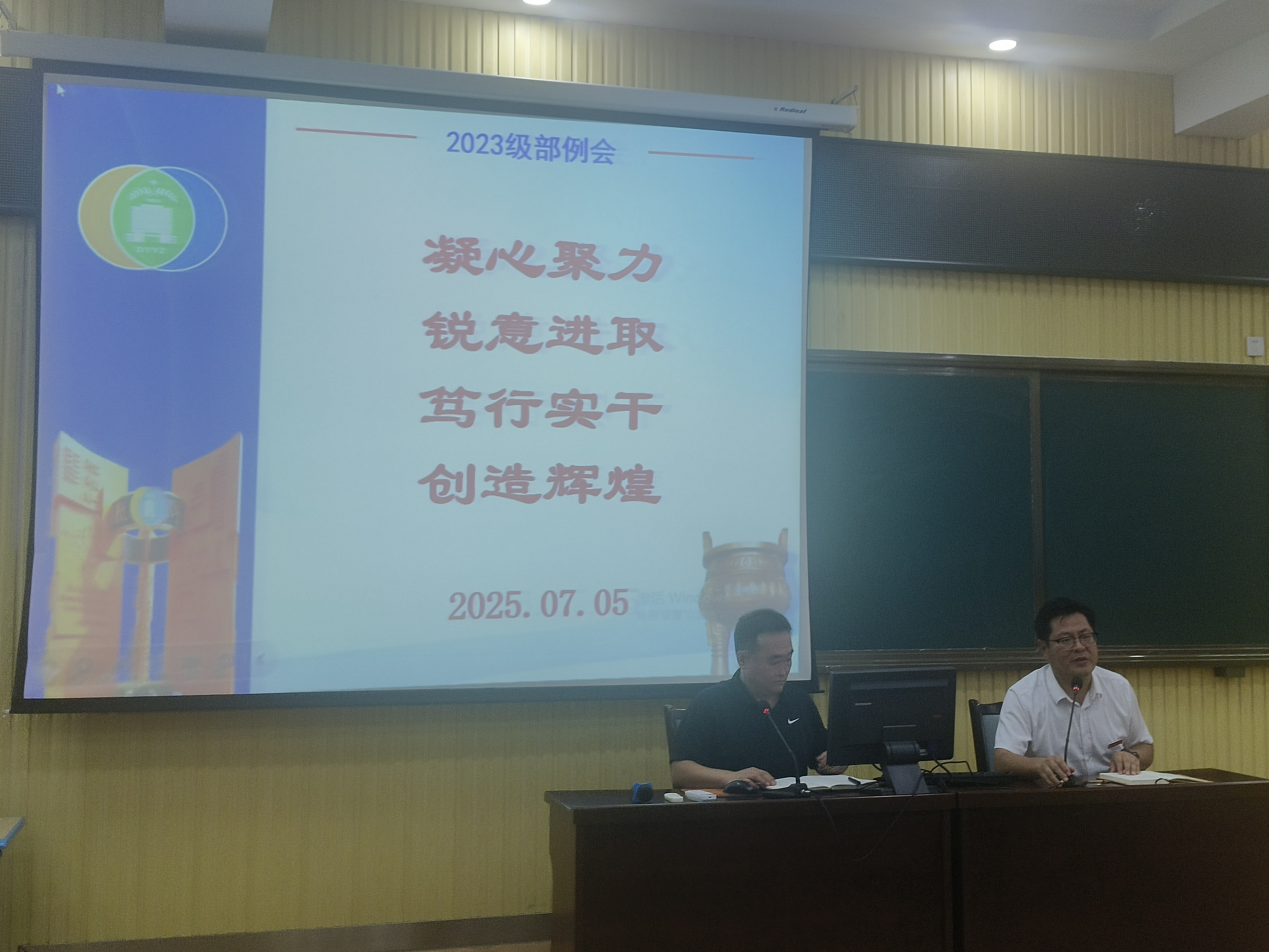 7月5日,2023级部在高三阶梯教室召开级部例会,全体高三教师参会。会议由2023级部级部主任李中刚主持;2023级部副主任王岳、刘培良进一步强调了班级管理、教学管理工作的注意事项;党委委员、副校长李衡斌参加会议,为全体高三教师鼓劲加油。