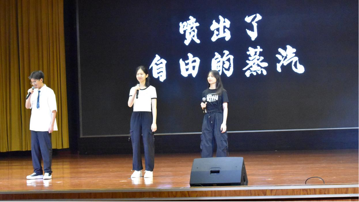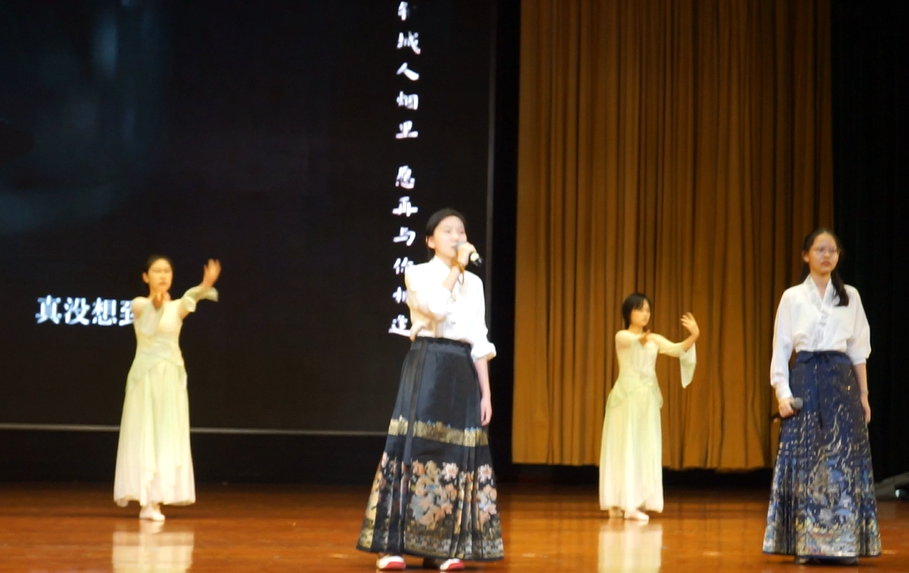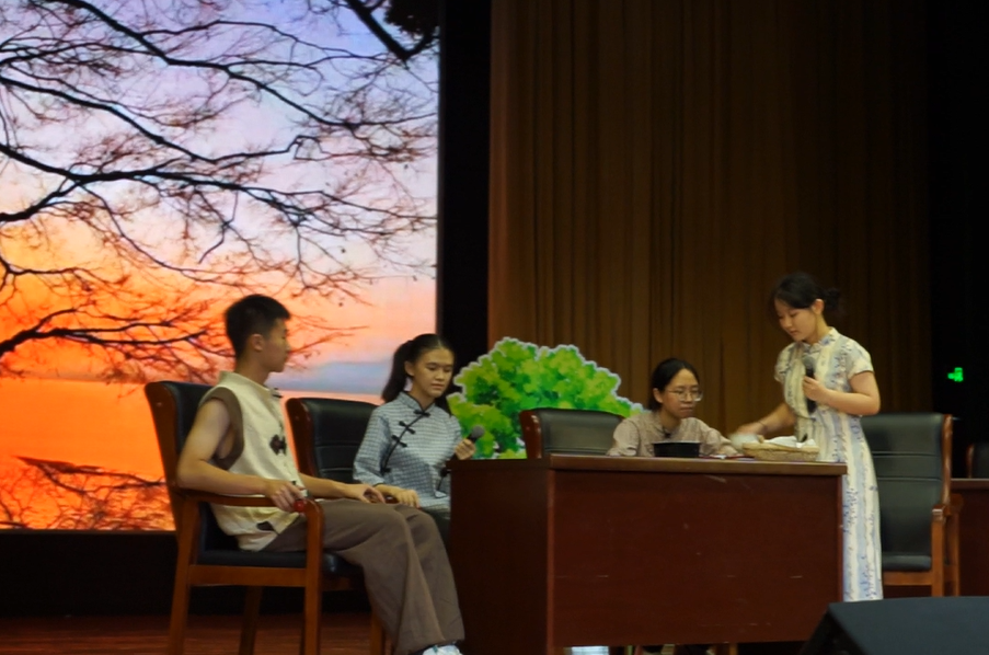 戏剧舞台成为经典重生的沃土。宋子涵团队以恢弘场景还原《史记·鸿门宴》的剑拔弩张,项庄舞剑的寒光中尽显历史抉择的惊心动魄;两班学生同台竞演《雷雨》,周朴园家族的倾轧与蘩漪的挣扎在不同视角下碰撞出新的悲剧力量。原创歌舞《如愿》《问风·寻霞》将文字情愫融入翩跹舞姿。中场互动环节"见微知著·墨写同窗"——学生们化身太史公,执《史记》之笔为身边师生立传,寥寥数语传神刻画人物才情,文言雅韵间尽显阅读迁移之妙。终场合唱《一路生花》则如涓流汇海,唱响书香润泽生命的永恒主题。