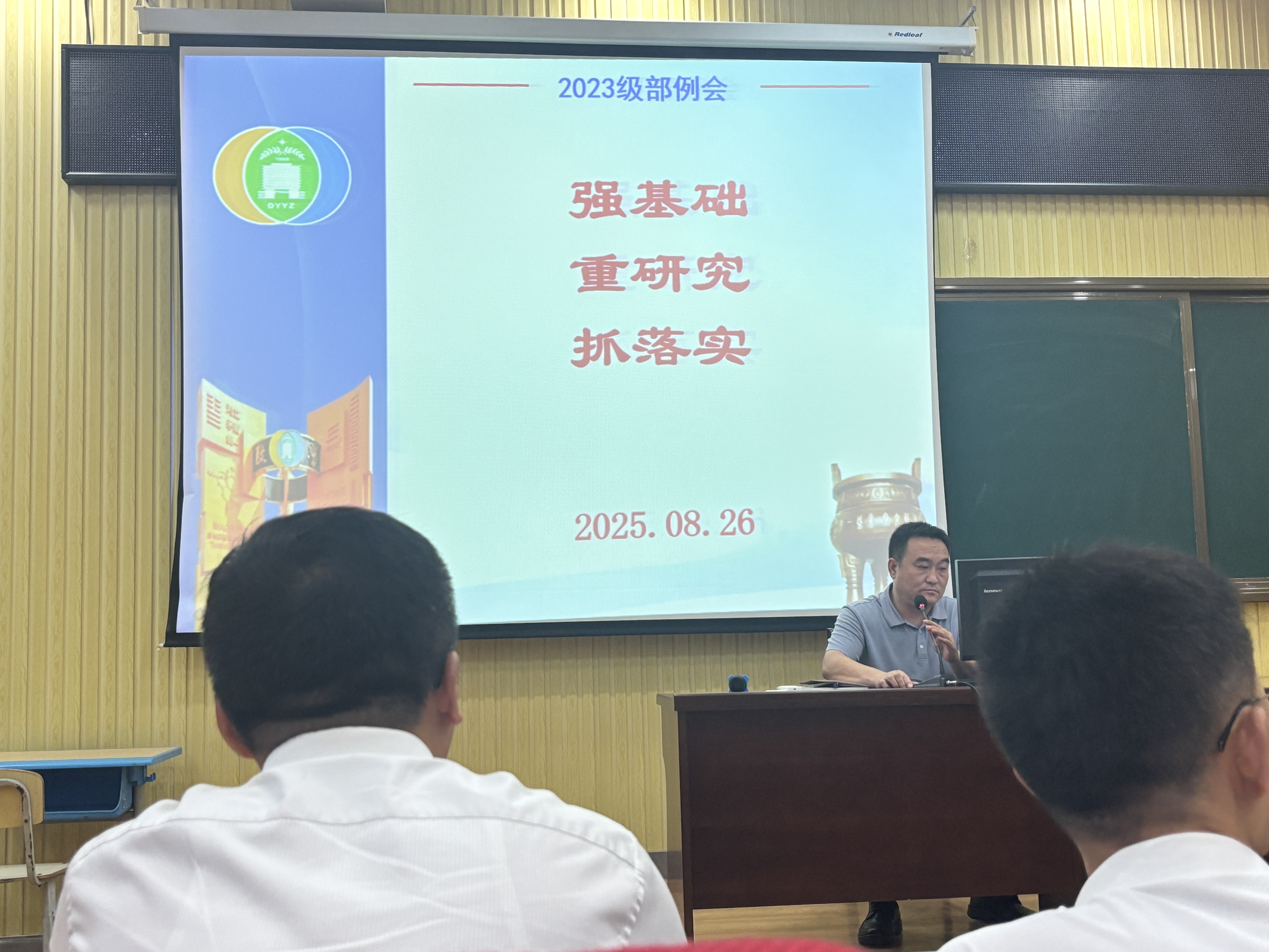 8月26日,2023级部在阶梯教室召开高三新学期全体教师级部例会,级部主任李中刚主持会议,高三全体教师参会。