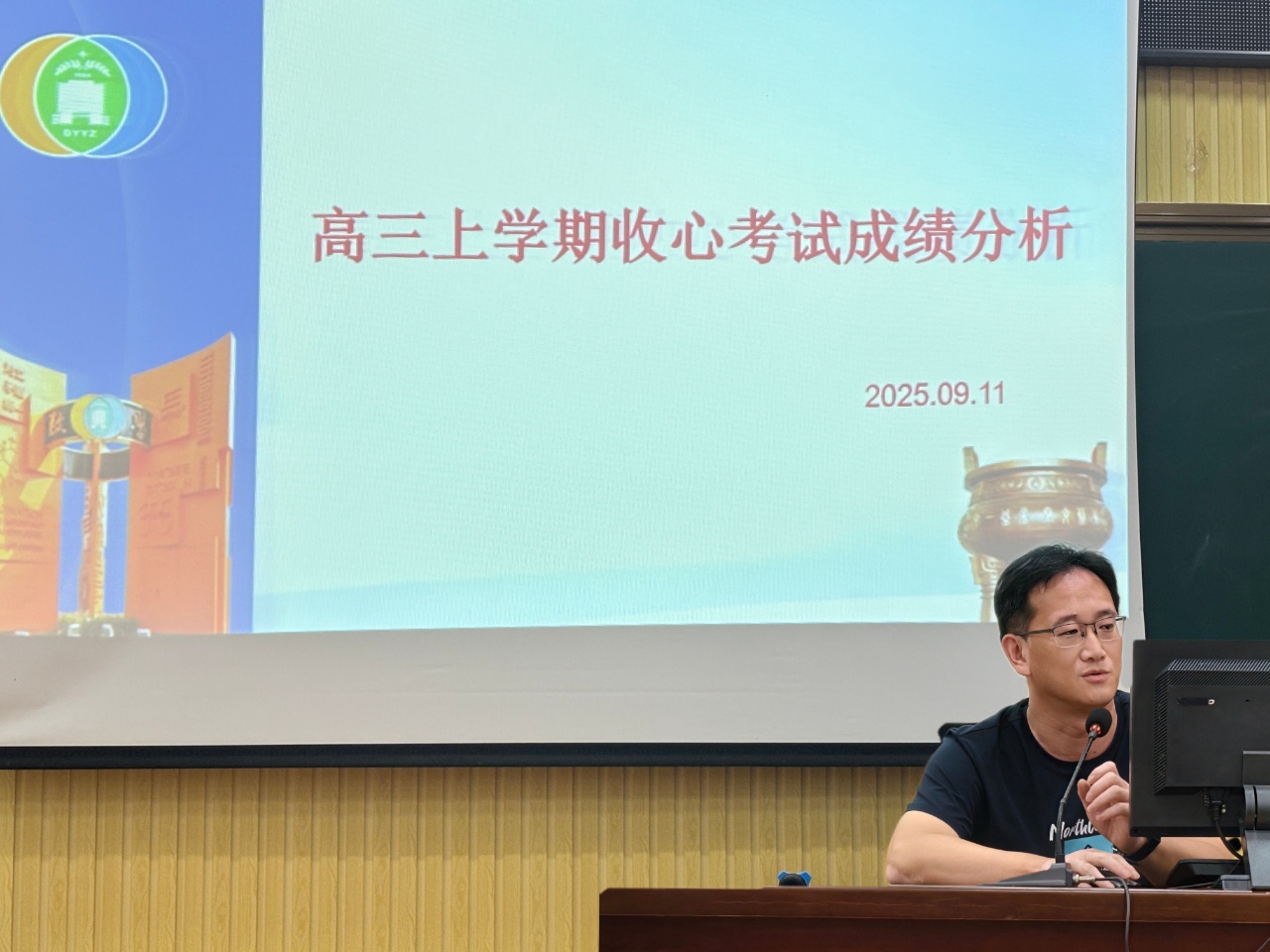 9月12日下午,市一中2023级部在阶梯教室召开高三新学期关键节点例会,聚焦常规管理细化与备考目标明确,为后续一学年的复习冲刺工作筑牢基础。会议由级部主任李中刚主持,高三全体教师参会,级部副主任刘培良围绕收心考试成绩作分析,并明确各班级阶段性目标,推动备考工作从“有序”向“高效”迈进。