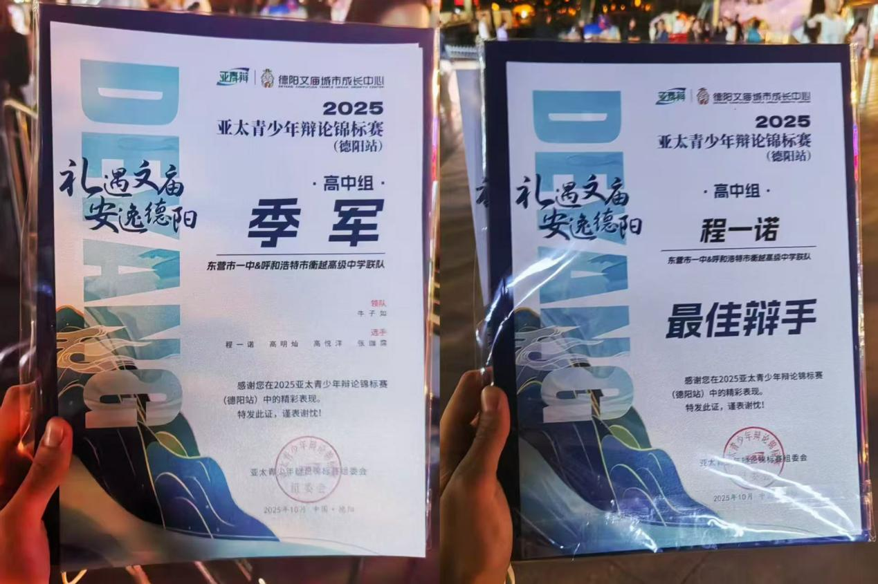 我校辩论队再创佳绩!在刚刚结束的“亚青辩”中获季军,同时,程一诺同学获得最佳辩手称号!