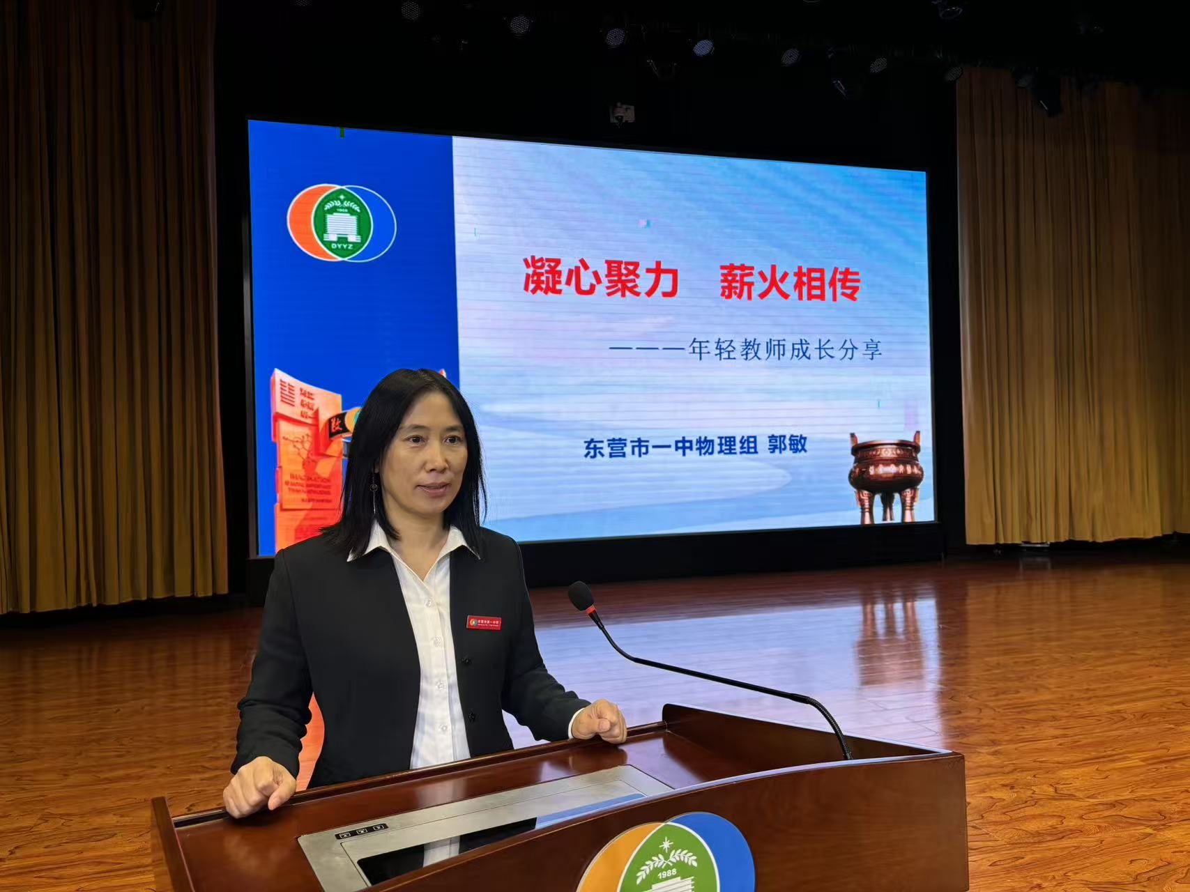 随后召开全体教职工大会。会议首先宣布了近期相关人事调动决定。接着,创新实验部的郭敏老师和刘晓行老师分别以《凝心聚力,薪火相传——谈谈青年教师的培养》《春风化雨,育英才》为题,分享了他们在团队建设与经验传承、学科教学与人才培养、教学成果与育人方法等方面的宝贵经验与感人事迹。她们真诚的话语、感人的事迹、典型的做法与无私的奉献精神,从侧面展现了我校教师深厚的专业素养与高尚的职业情操。