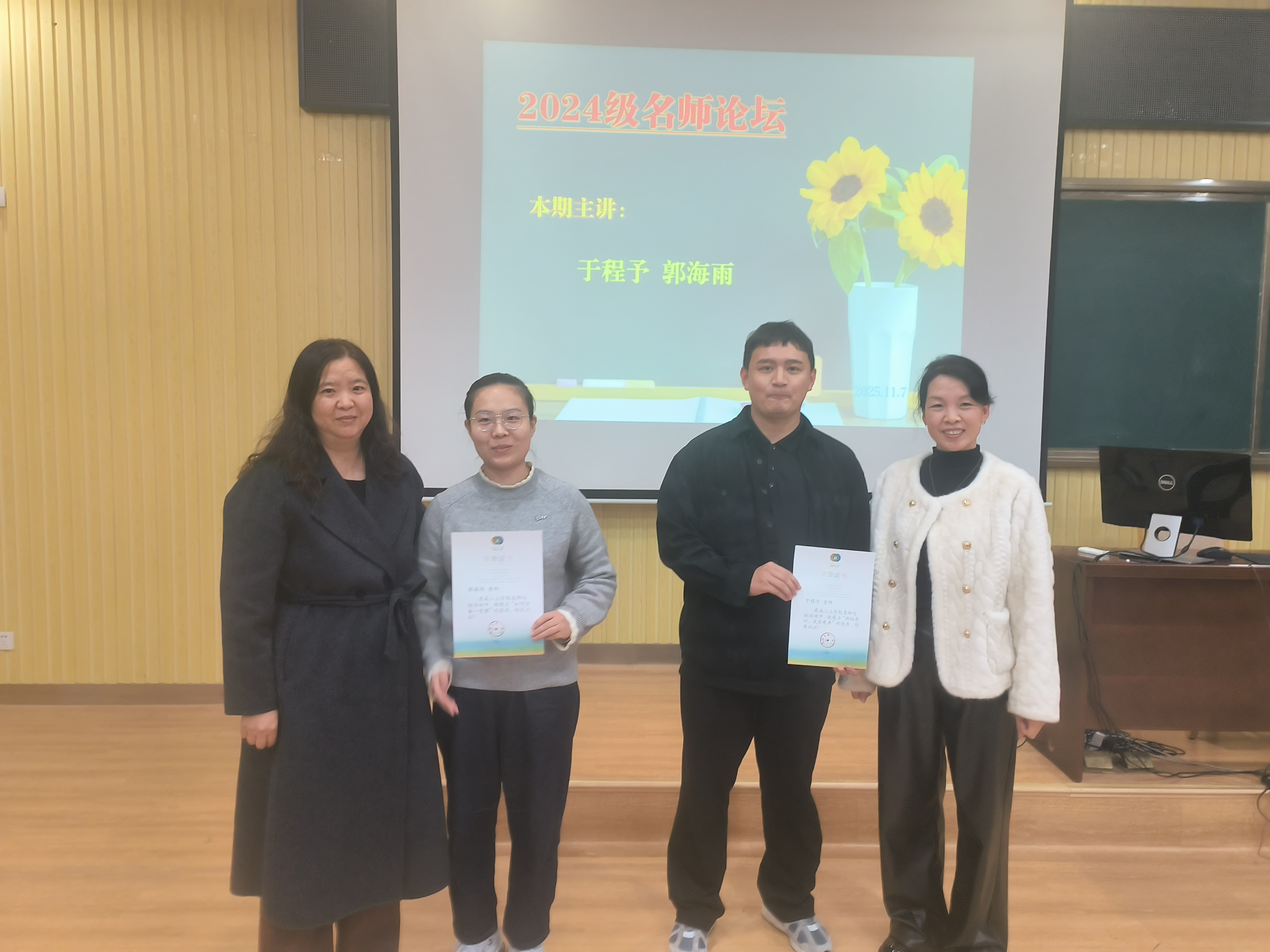 在论坛的颁奖环节,张琳琳老师和郑春苗老师作为推荐人,分别对于程予、郭海雨的教育理念与工作实绩给予高度评价,为两位老师颁发了荣誉证书,表彰他们在教育教学中的卓越表现。