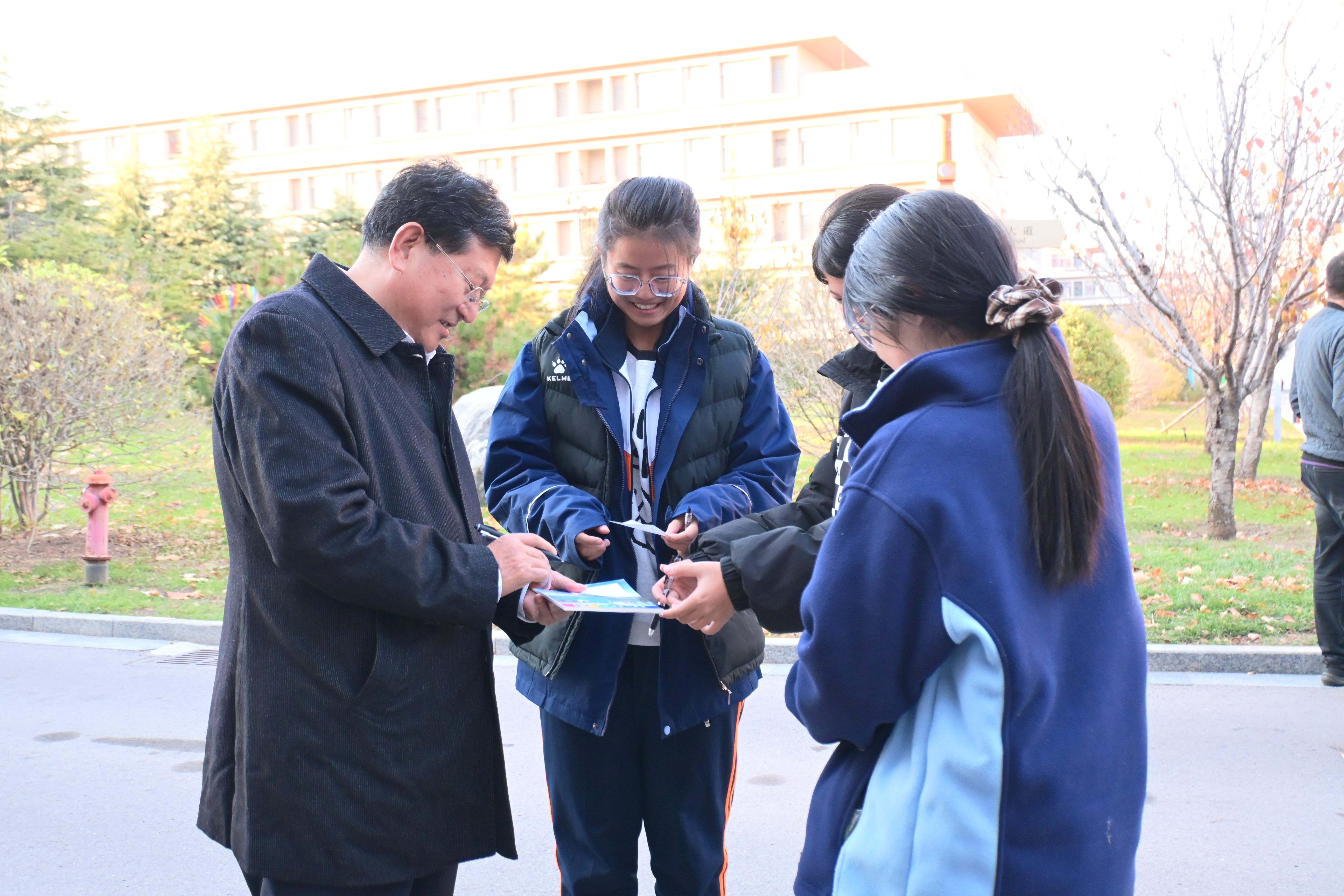 最受瞩目的当属自由跑前三名的颁奖环节。活动接近尾声,史本泉校长亲临现场,为脱颖而出的学子颁发奖品。“祝贺你!继续保持这份拼搏劲头!”校长的亲切鼓励与殷切期许,让获奖学生备受鼓舞,也让在场的每一位同学感受到运动的荣誉感与归属感。这份特殊的奖励,不仅是对速度的肯定,更是对同学们积极参与、奋勇争先精神的嘉奖。