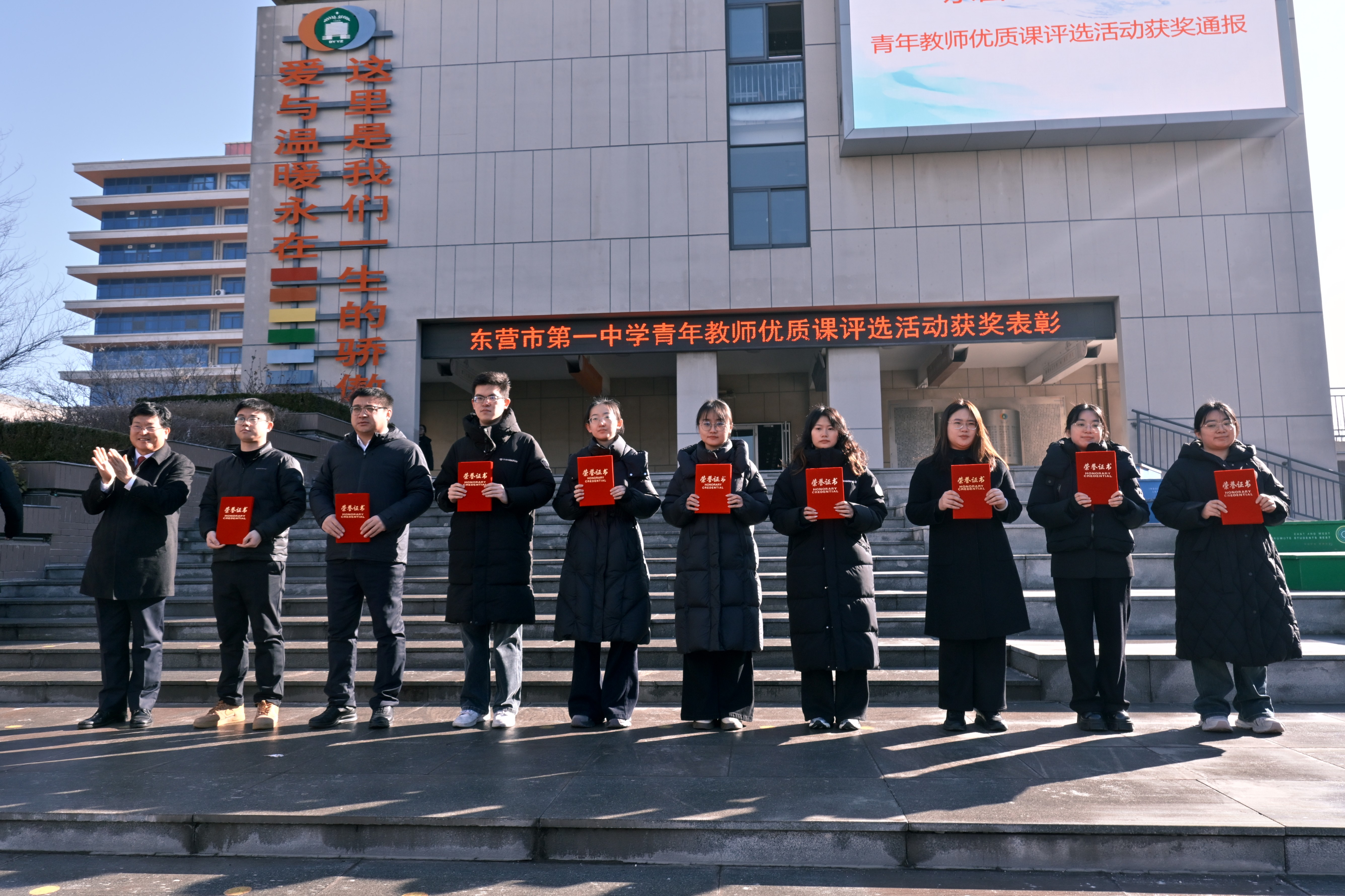 2月2日上午,在学校升旗仪式上举行了颁奖典礼。教科室季建芳主任宣布了比赛结果,学校党委书记、校长史本泉为获奖教师颁奖。