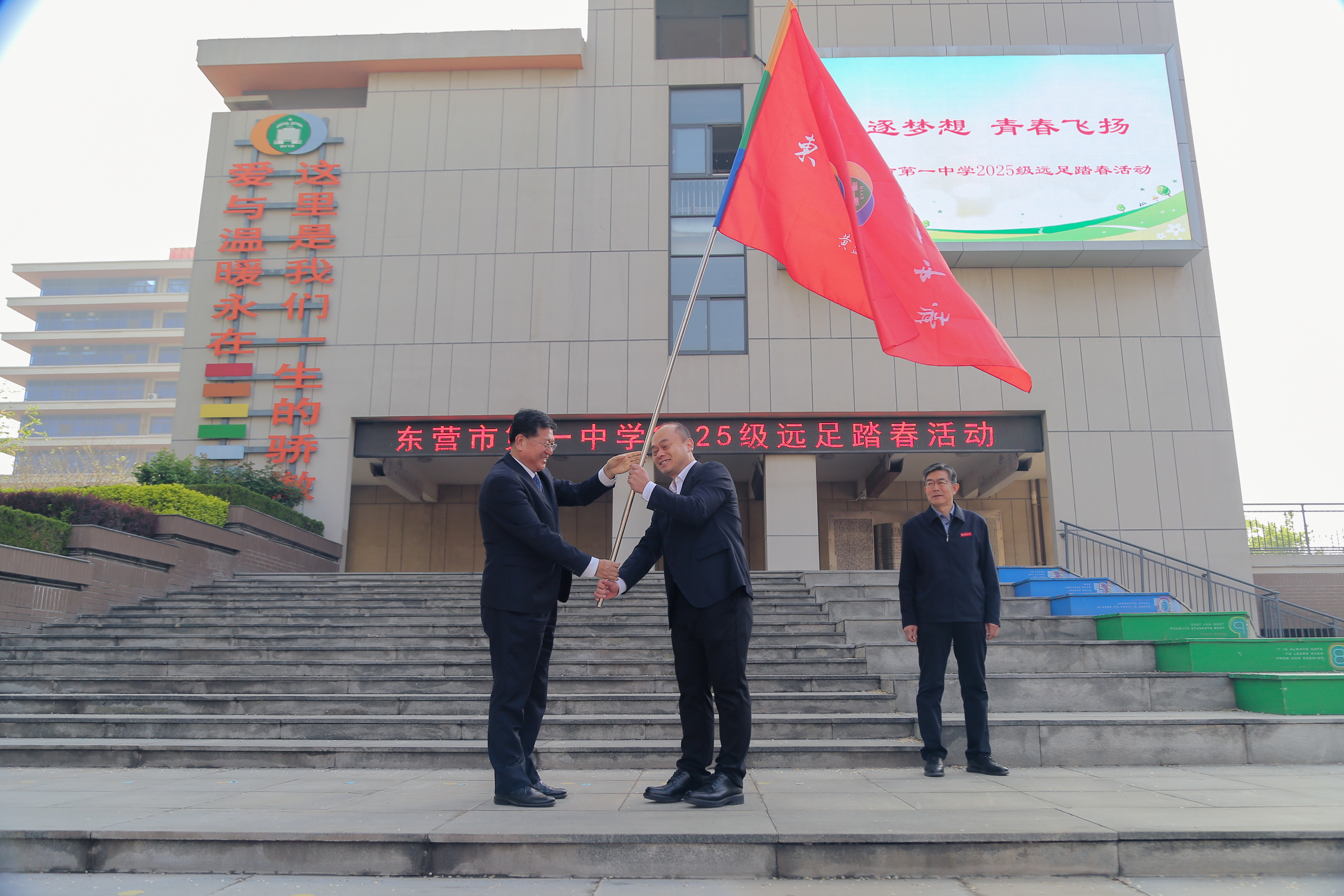学管处主任高长征下达出发令,威风锣鼓擂响出征节拍,年轻的队伍迎着晨光踏上春日征程。