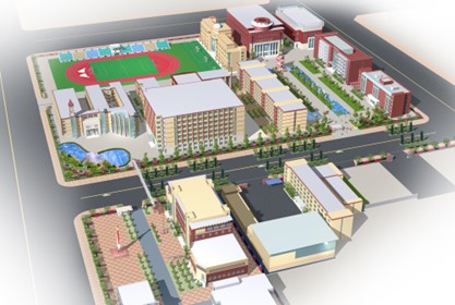 完成了北院新校区的建设,包括:第一教学楼、第一餐厅、4、5号宿舍楼、东院第四教学楼,总建筑面积达37OOO平方米,总投资7000万元;学校由原来的60个教学班扩大到90个班,实现了第二步的建设目标。