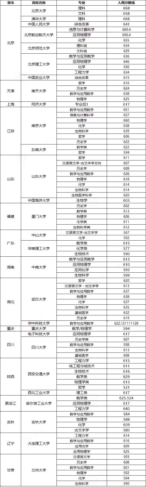 强基计划分为入围和校考两大部分,不能入围校考再好也是白搭,在2021年36所强基计划试点高校中,清华大学、北京大学、复旦大学、上海交通大学、华东师范大学、浙江大学、中国科学技术大学、天津大学8所高校未公布入围分数线。 部分数据仅供参考。