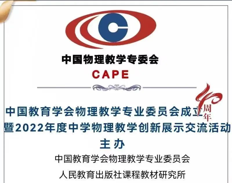 中国物理学会专业委员会成立40周年暨2022年度中学物理教学创新展示交流活动于2022年11月4日至6日在江苏南京举办。本次活动由中国教育学会物理教学专业委员会、人民教育出版社课程教材研究所主办,以“核心素养引领下的物理教学”为主题,来自全国各省、自治区、直辖市的300多位教师代表进行了课堂教学、实验创新和论文的展示交流。