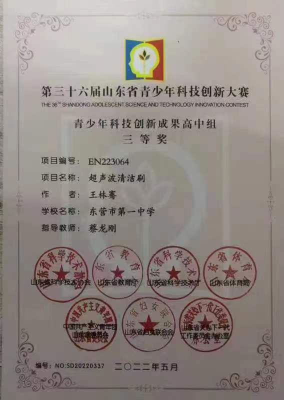 蔡龙刚老师被评为山东省青少年科技创新大赛优秀指导教师