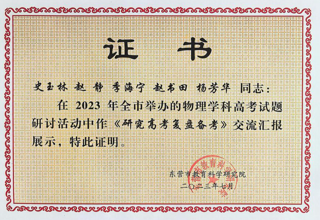 史玉林老师在2023年全市举办的物理学科高考试题研讨活动中做交流汇报展示