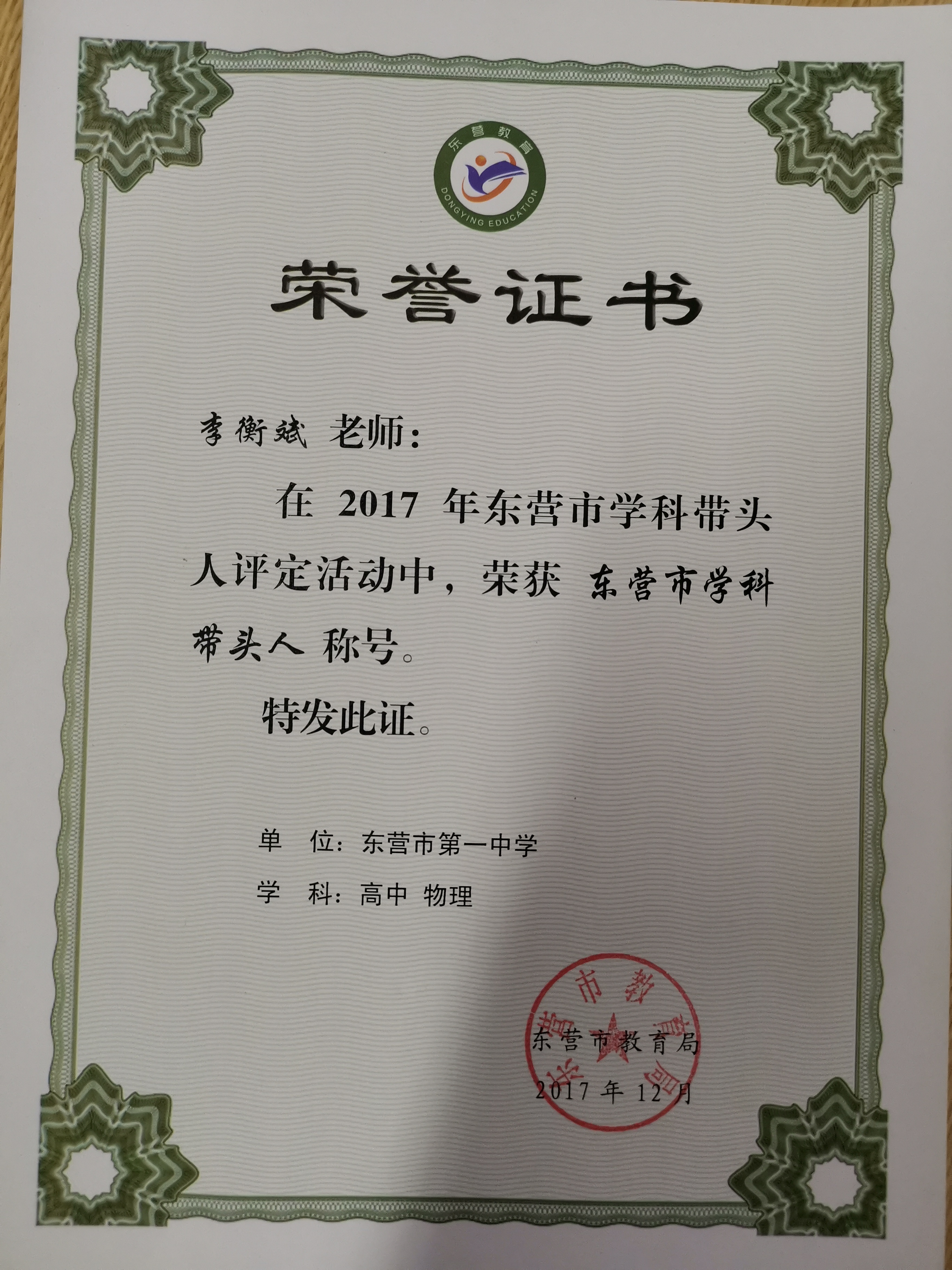 李衡斌还拥有山东省物理学会会员、山东省物理奥赛组委会中级教练员、山东省暑期培训指导教师等一系列头衔与身份,这一切都是对他刻苦钻研、孜孜奋斗的认可与褒奖。