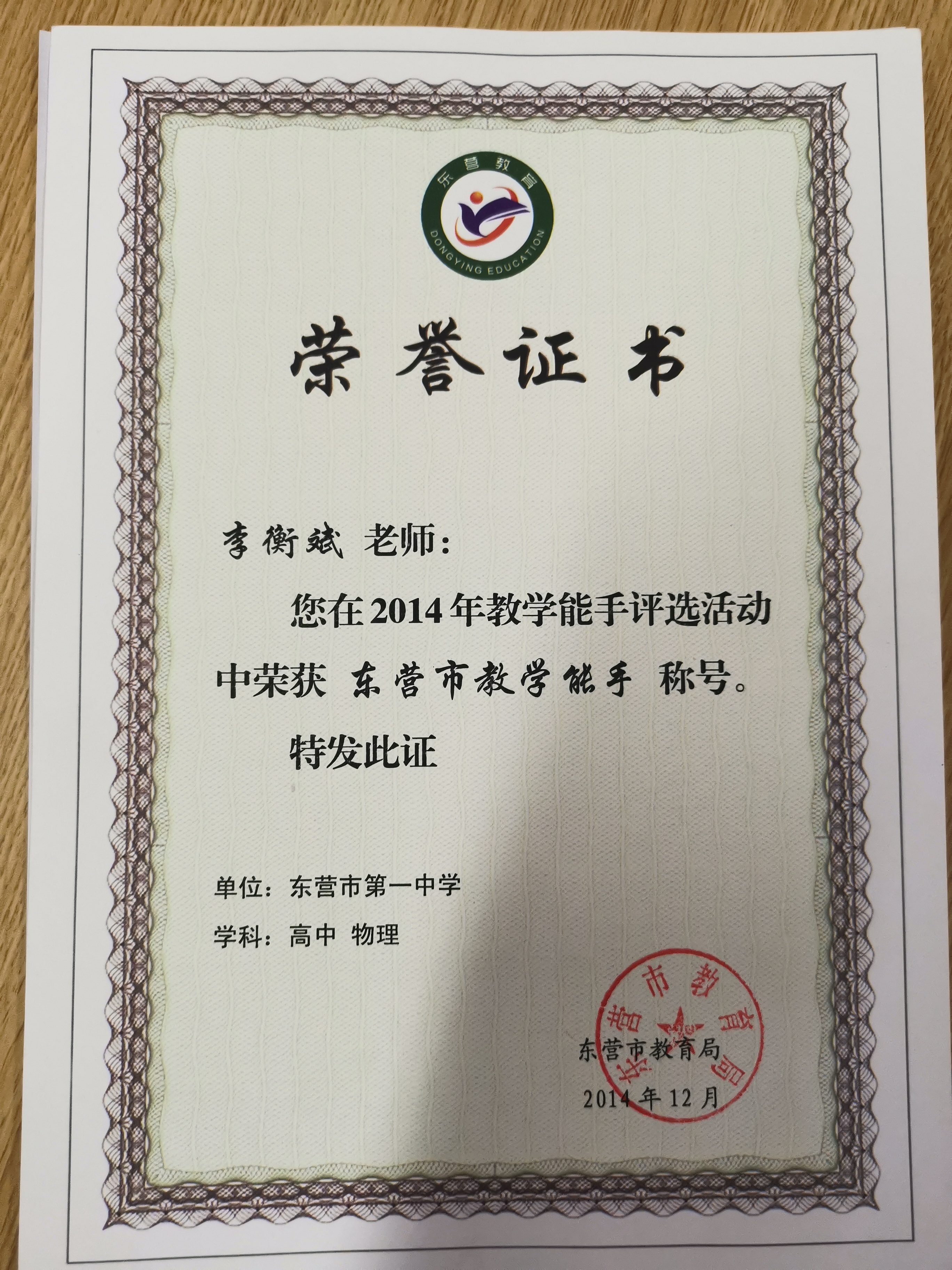 ——东营市第一中学教师李衡斌事迹