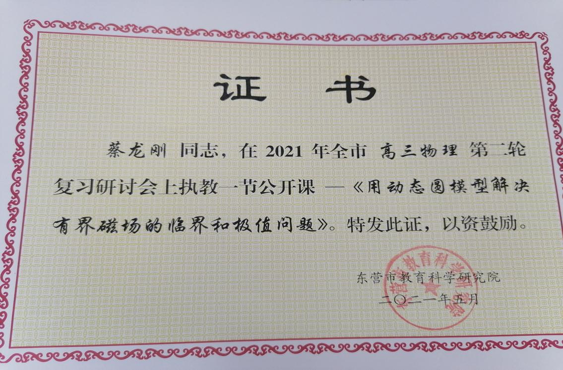 多次参加校级优质课和示范课展示,2021 年代表学校参加东营市高三物理二轮复习研讨会上执教公开课。