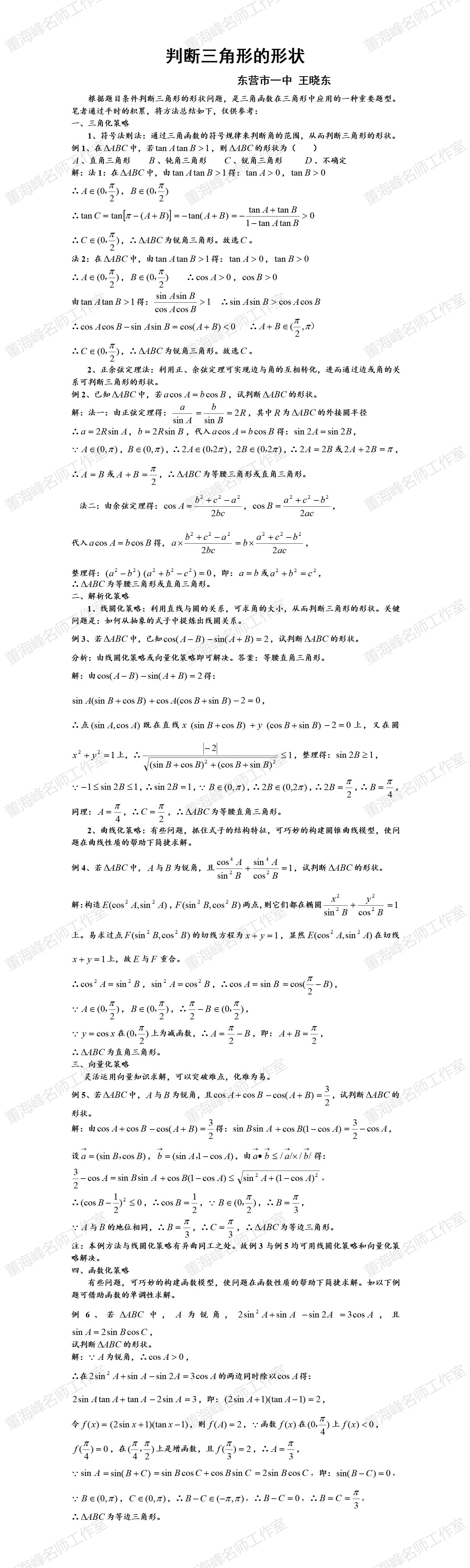 判断三角形的形状 王晓东