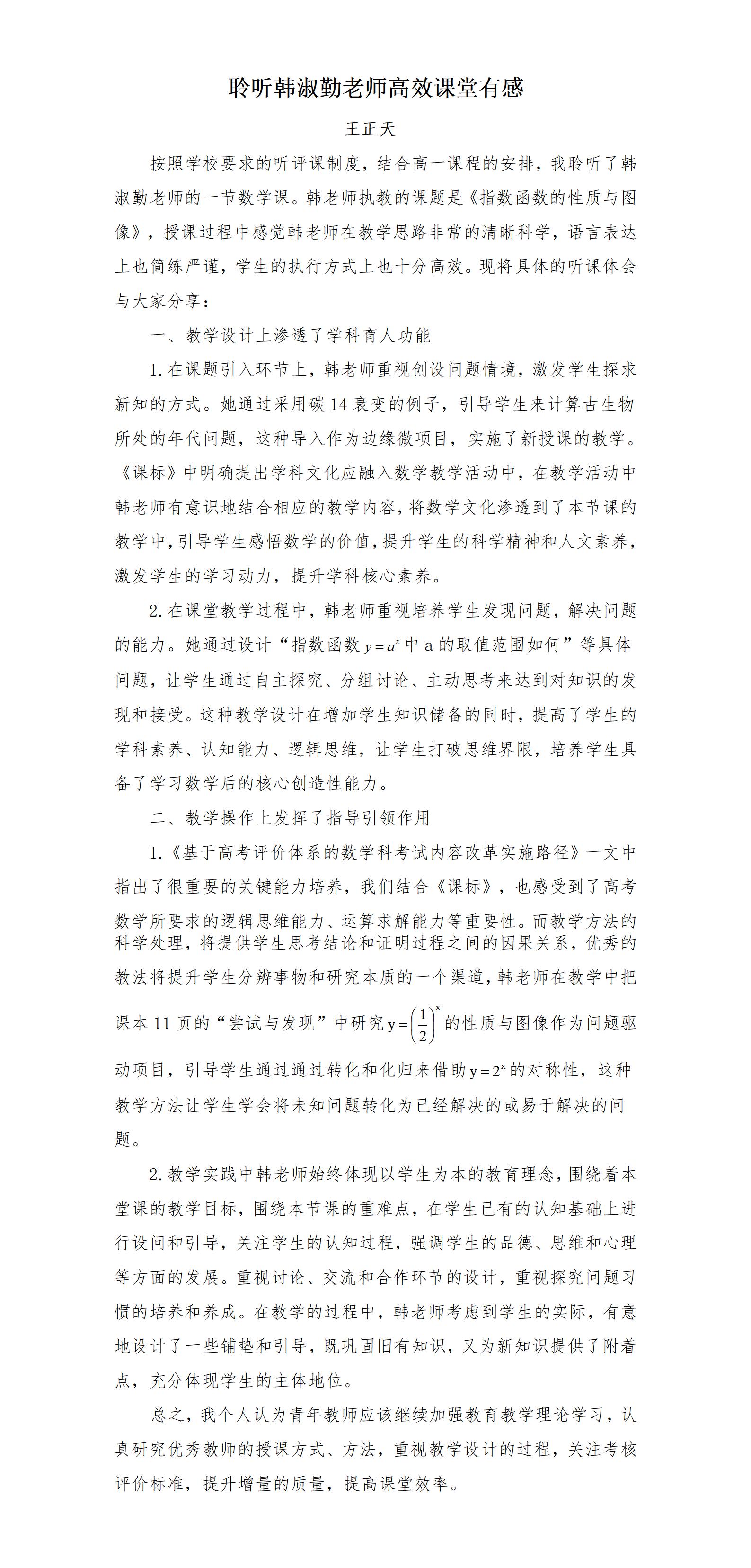 聆听韩淑勤老师高效课堂有感 ——王正天