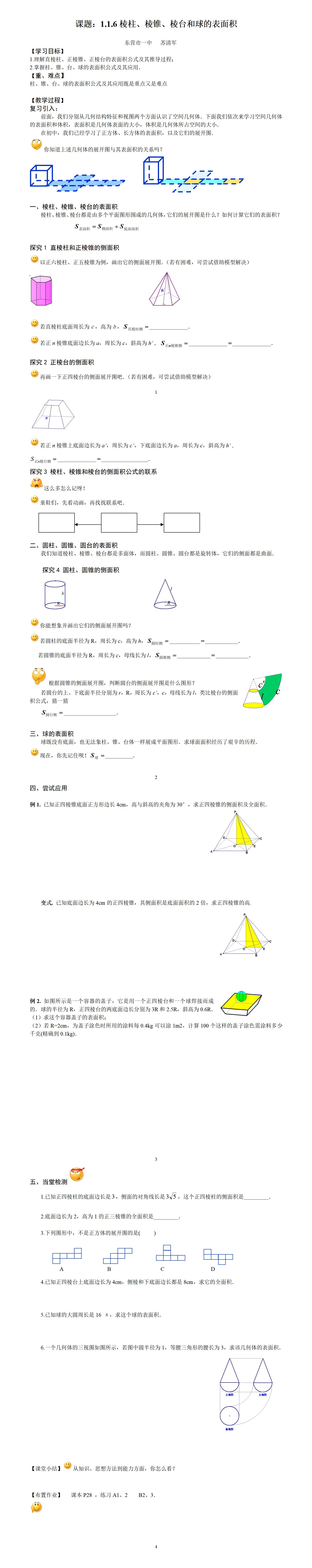 棱柱、棱锥、棱台和球的表面积苏清军