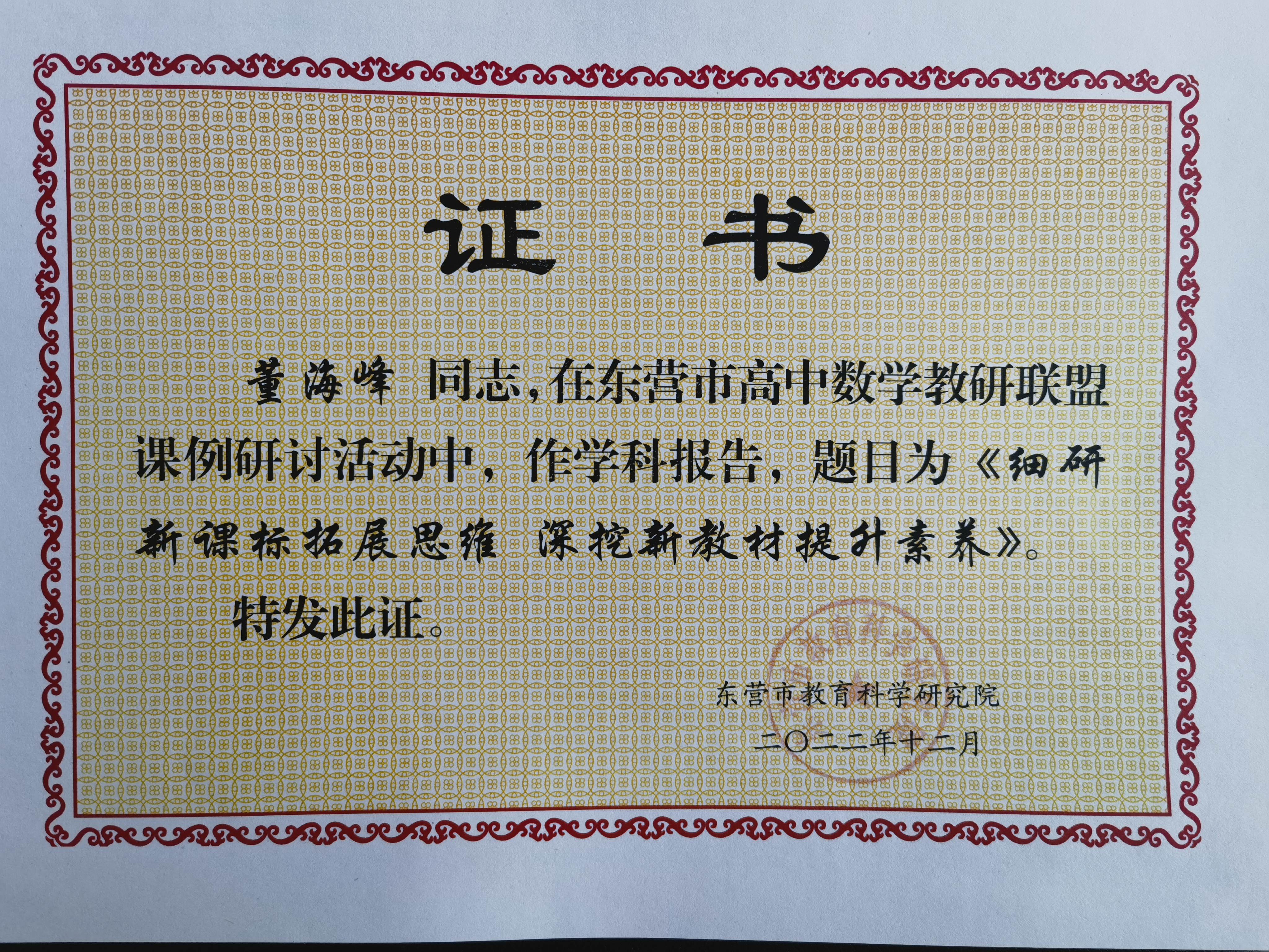 董海峰在东营市高中数学教研联盟课例研讨活动中中作学科报告