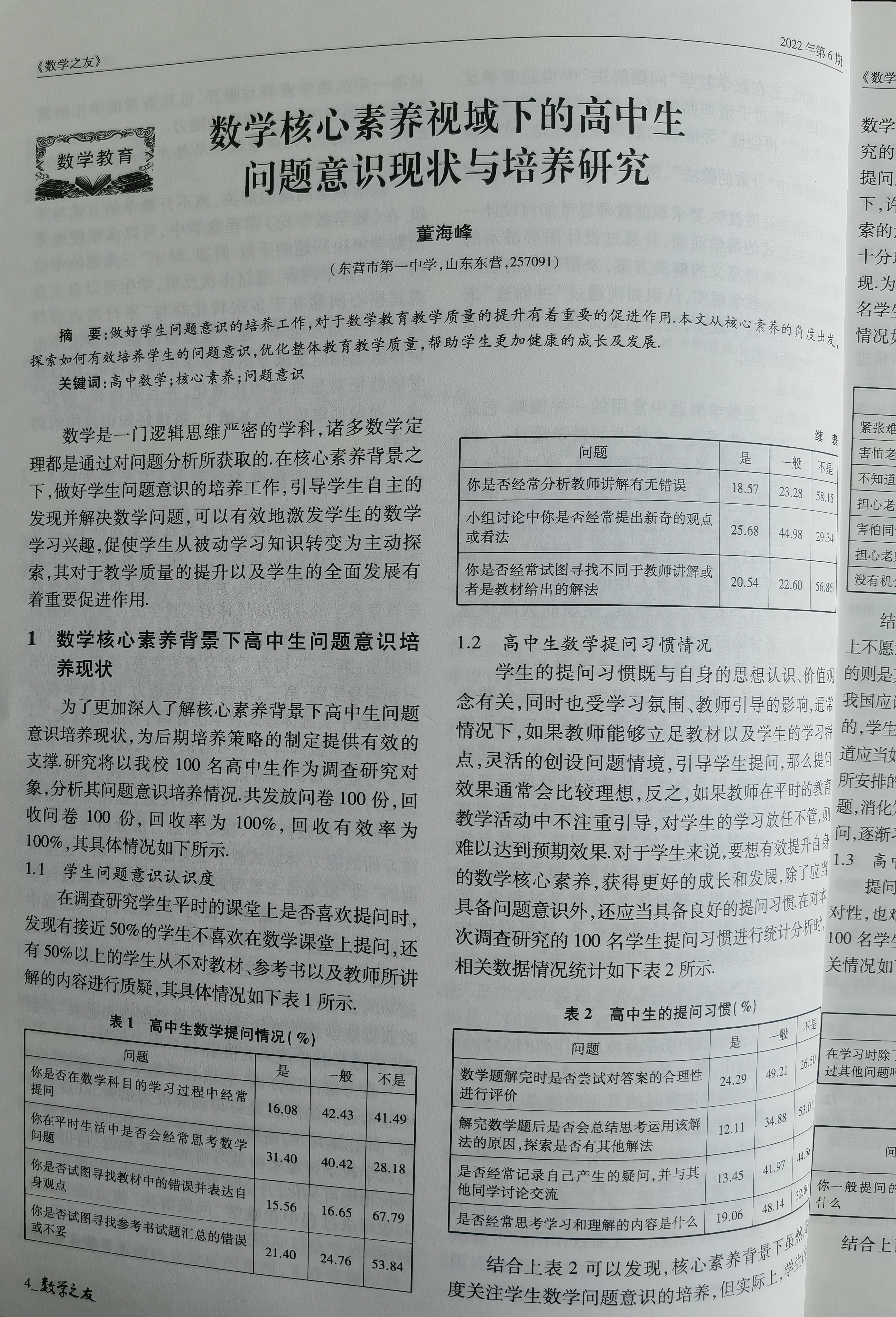 董海峰在《高中数学课堂教学策略研究》发表论文