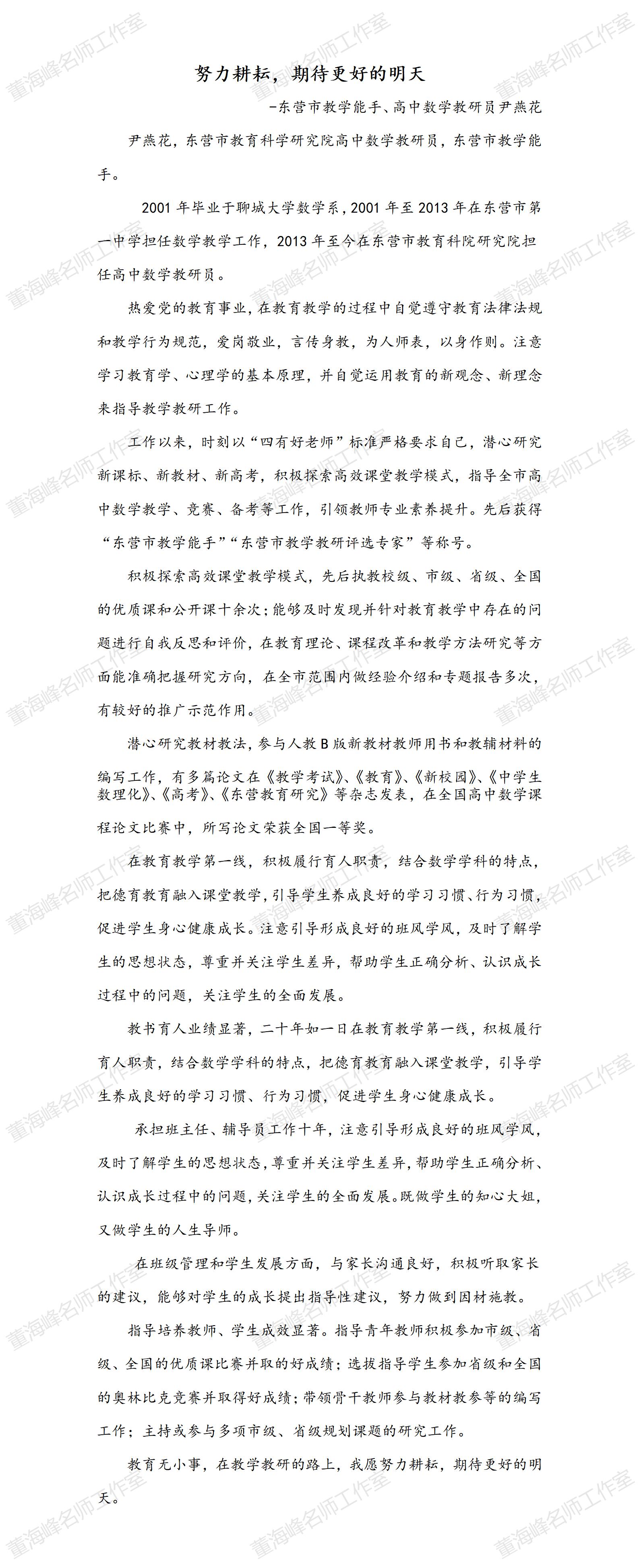努力耕耘期待更好的明天-东营市教学能手、高中数学教研员尹燕花