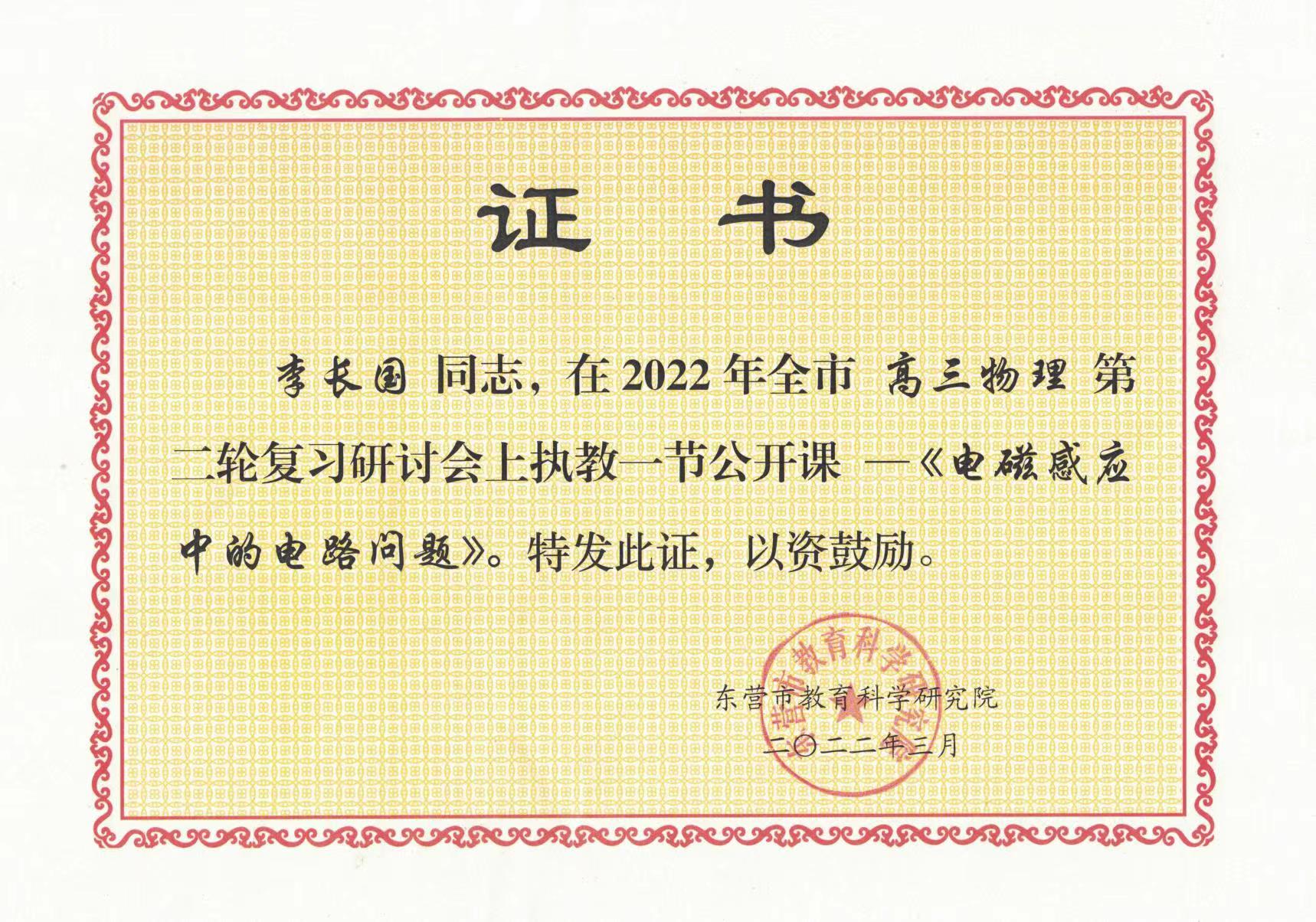 李长国在2022年东营市高三物理第二轮复习研讨会上执教公开课。