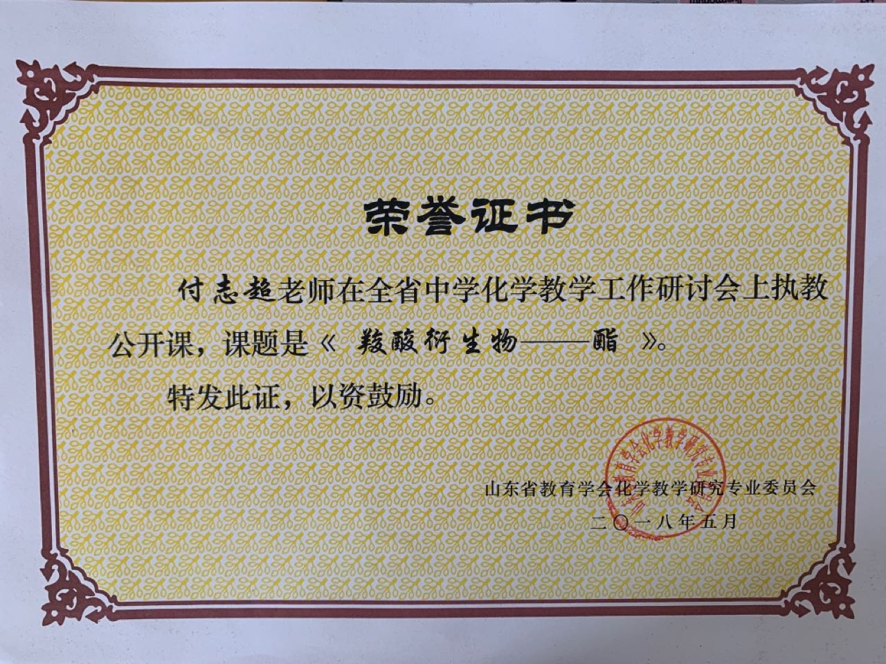 付志超在山东省化学研讨会执教公开课《酯》