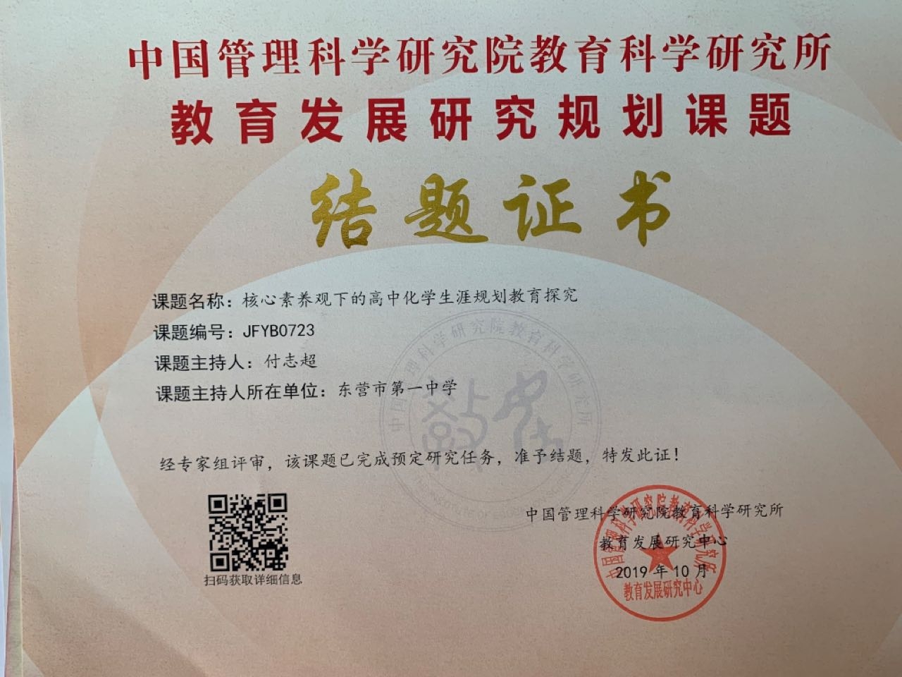 付志超主持课题《核心素养下高中化学生涯规划教育探究》顺利结题