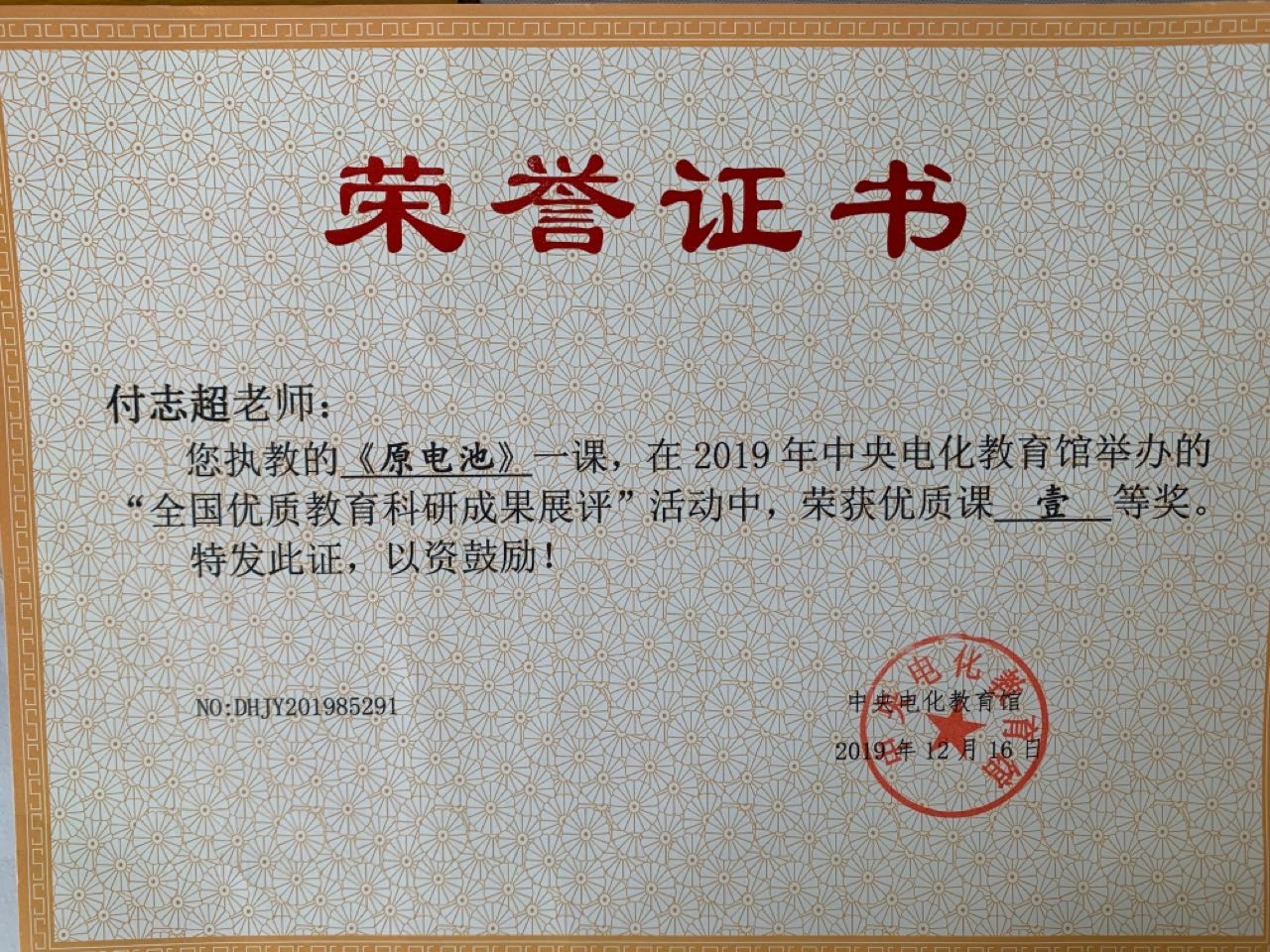 付志超获全国优质教育科研成果展评一等奖