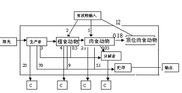 递效率,若顶级肉食动物增获得1kJ能量,则生产者需具有 kJ能量。(计算结果保留1位小数)