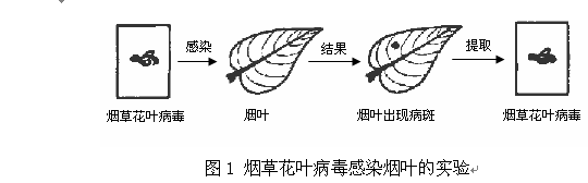 学生从前人设计实验的过程中学到科学的研究方法,还不是最终目的,会灵活运用这些方法解决问题,才是科学史教育的最高境界。在学习了三个经典实验后,教师可考察一下学生对本节涉及到的科学方法的领会程度。提供给学生烟草花叶病毒相关知识(如图1),让学生自己设计实验探究烟草花叶病毒中的遗传物质。