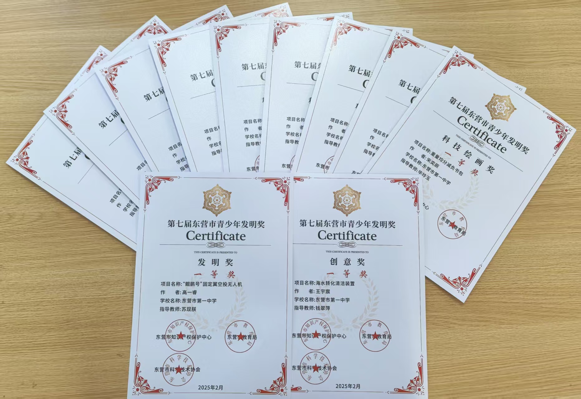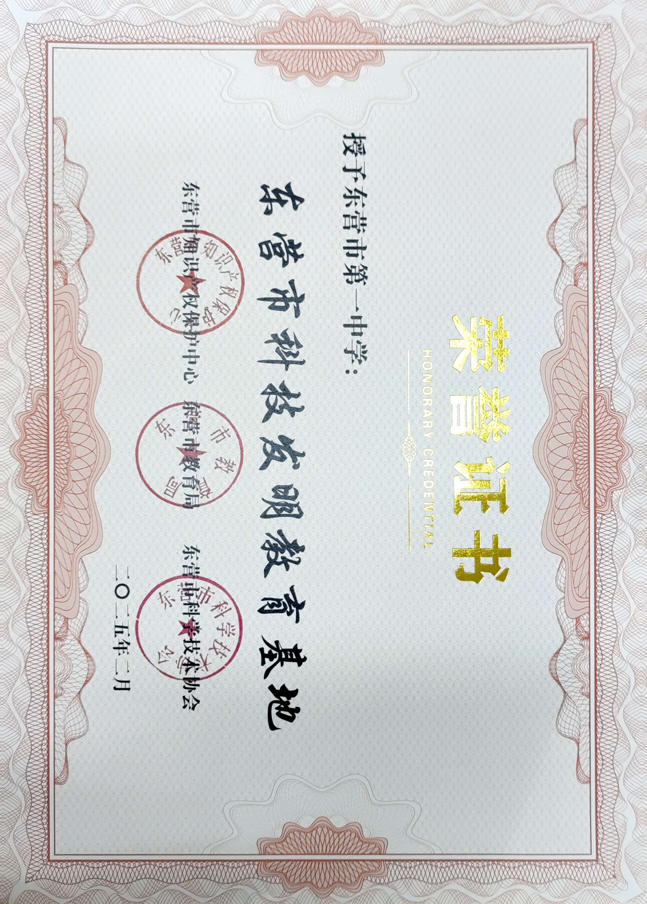在第七届“东营市青少年发明奖”评选活动中,我校喜获“东营市科技发明教育基地”称号!钱翠萍、毕玲玉、李文晓、张喜燕、马志鸿、苏现朕、王强、周荣伟、唐俊星、赵欣、张瑞等11位老师荣获市“园丁奖”,高一睿等11位同学荣获市一等奖,孙臣桐等5位位同学荣获市二等奖,刘森瑞等5位同学荣获市三等奖,获奖人数与等次均创新高。