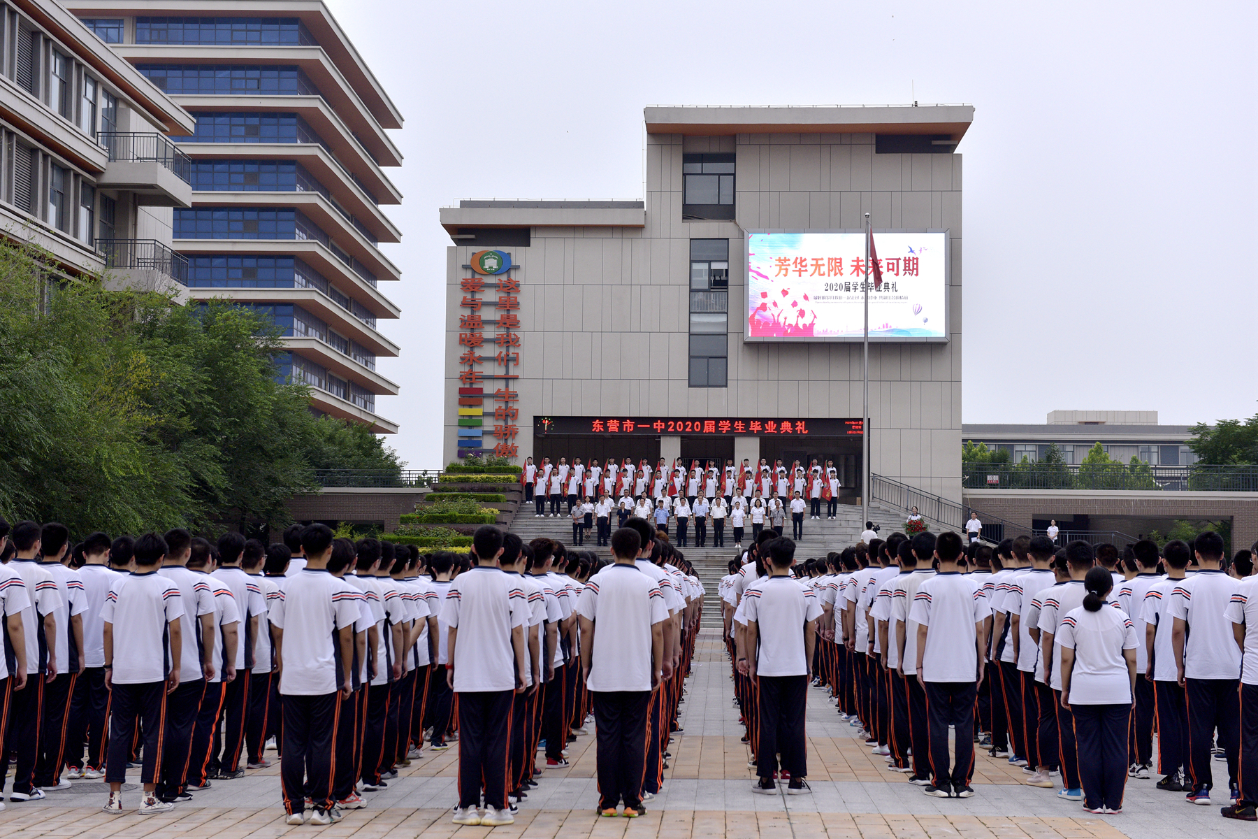 毕业典礼由东营市一中校园电视台全程直播,广大高三家长们通过学校南大门电子屏和微信进行了同步观看。