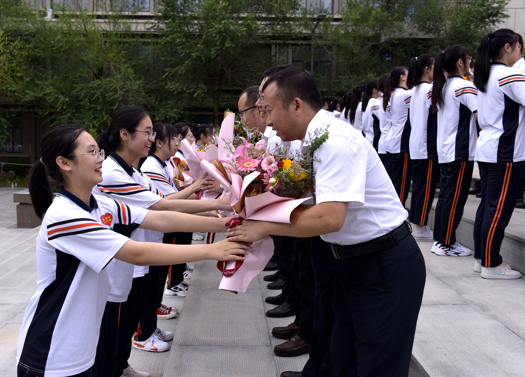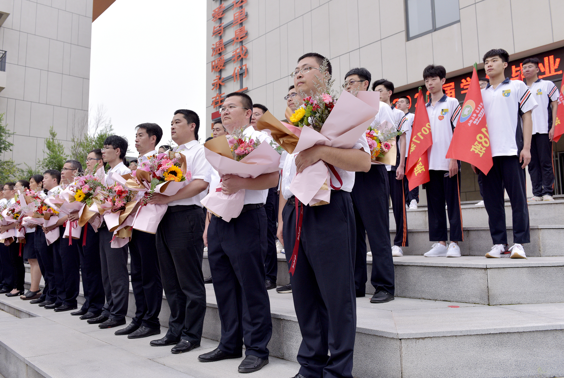 各班班长代表同学们向朝夕相处的班主任老师献上了美丽的鲜花,感谢恩师三年来的培养和教育。
