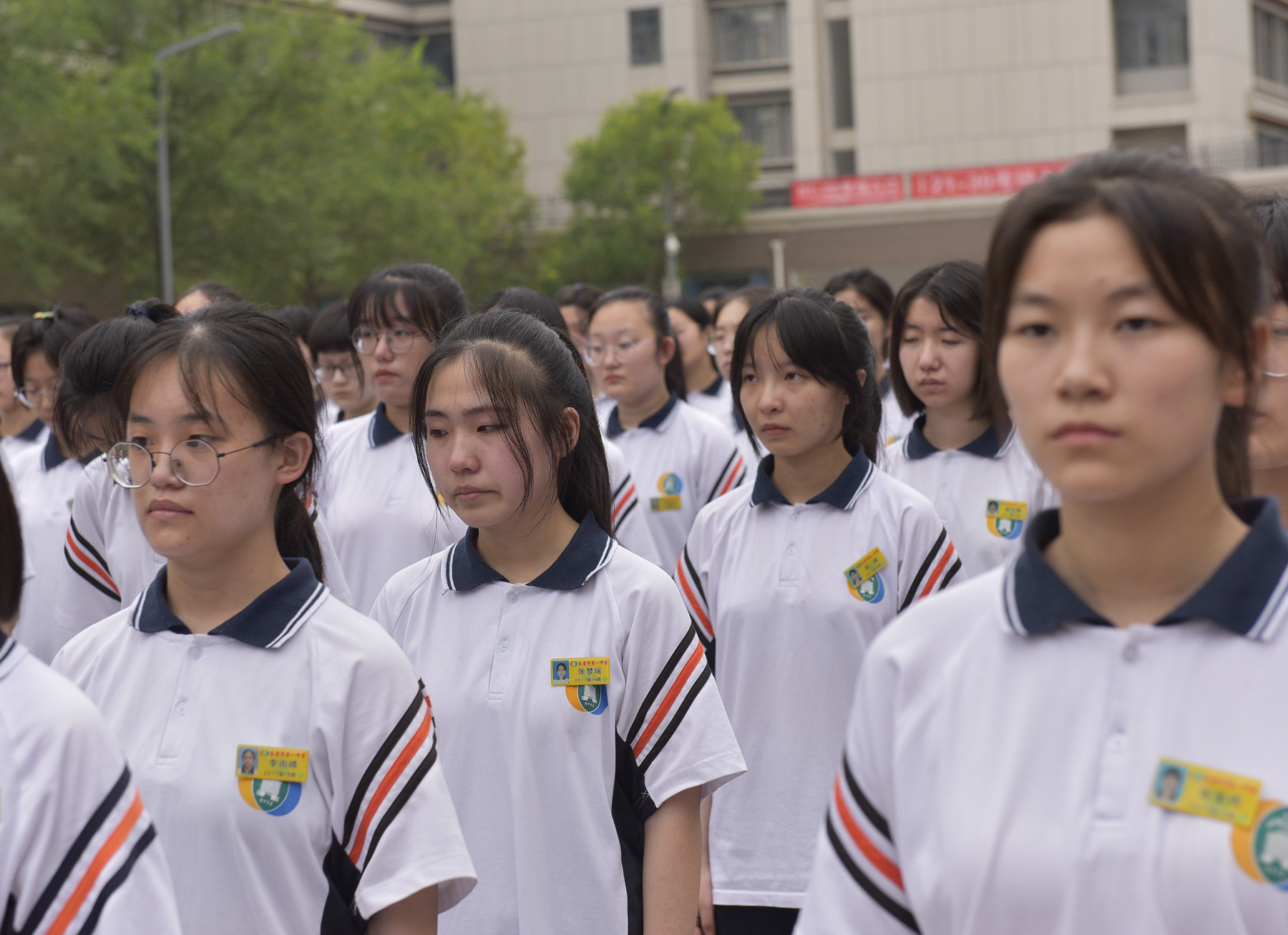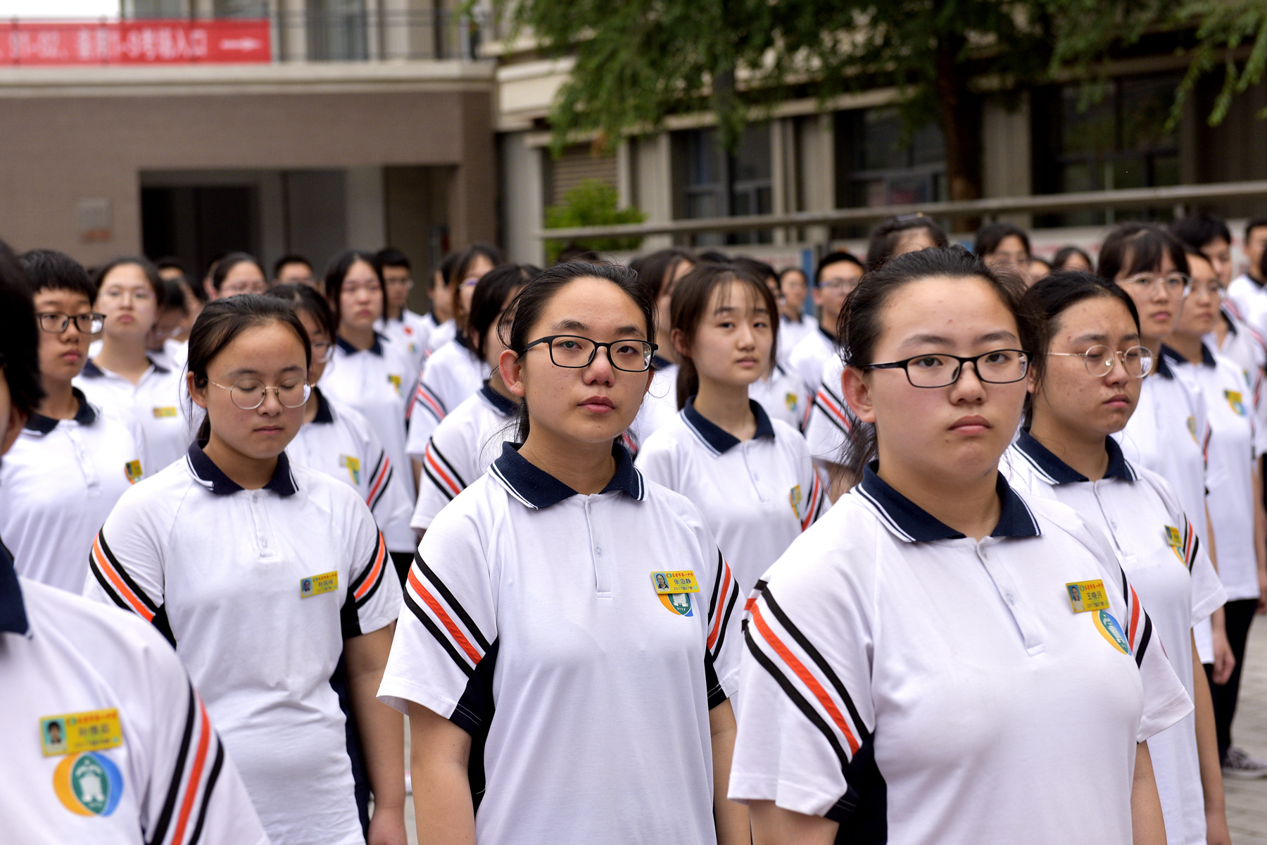 高三年级各班旗手手持写有校训的班旗走上主席台,在《毕业生》的背景音乐中,向全体同学展示了各班的班旗。仪式结束后,班旗将由市一中校史馆收藏。