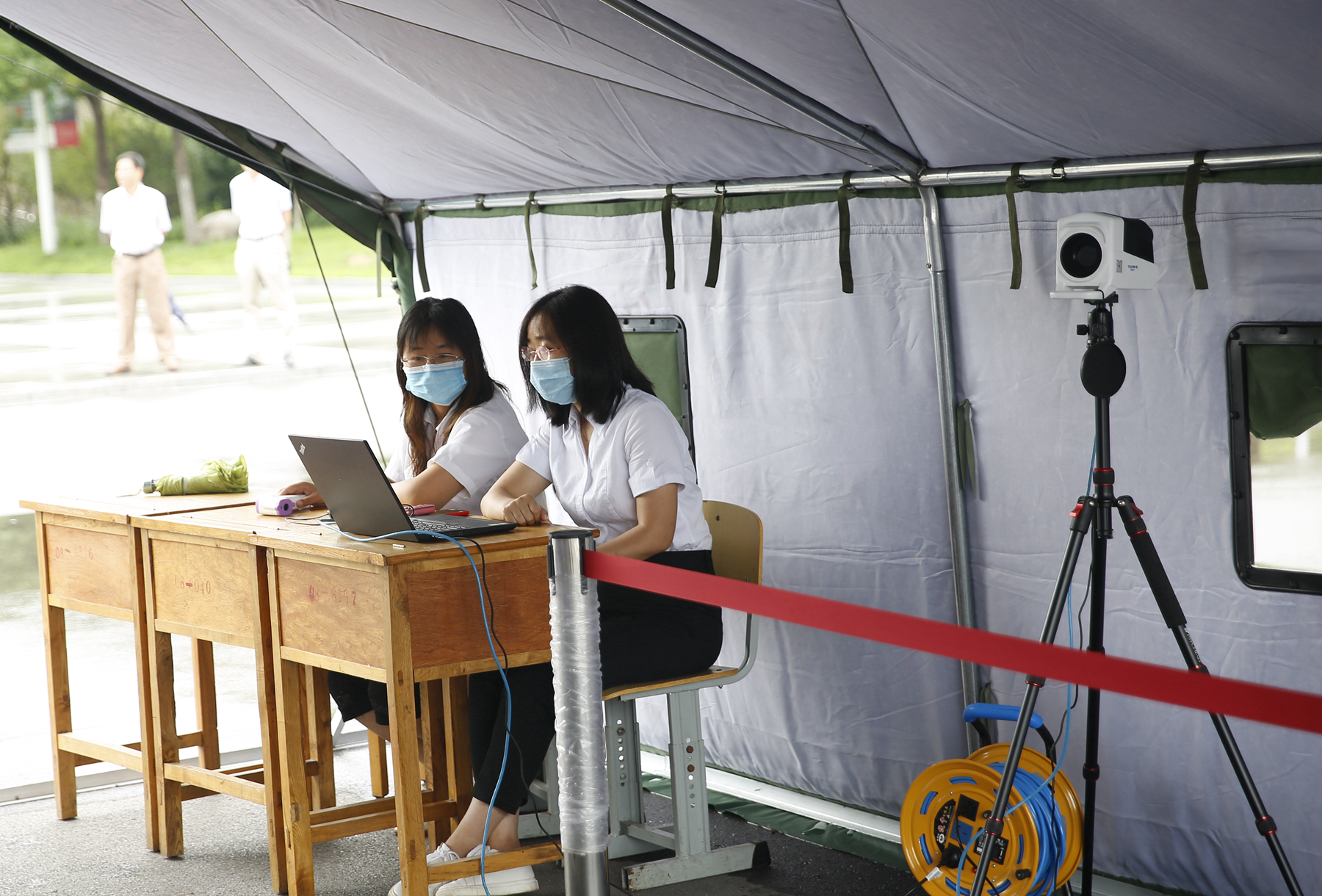 在今年特殊的疫情背景下,学校坚持疫情防控常态化,首先做好各考场的清洁消毒工作,为考生们创造卫生安全的考试环境。严格落实涉考人员健康监测制度,卫生防疫组掌握每一个人考生的身体情况,确保考试安全顺利进行。同时严格遵照教育招生考试院的要求,对考点进行全面细致的布置,设置备用考场。考点周围悬挂横幅、标语等指示牌;在做好疫情防控的同时,做好防暑降温和停电的应急准备工作。