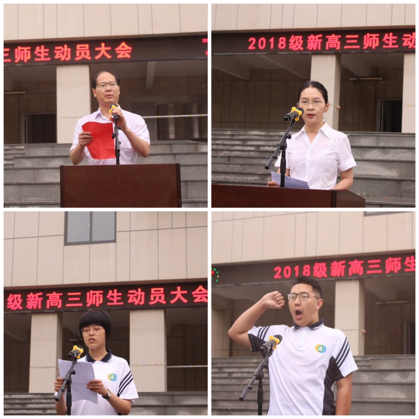 听完师长们语重心长的话语,全体同学激情满怀,庄严宣誓:“目标明确,积极向上……奋力拼搏,题名金榜!冲刺高考,创造辉煌!”洪亮高亢的誓言响彻升旗广场上空。