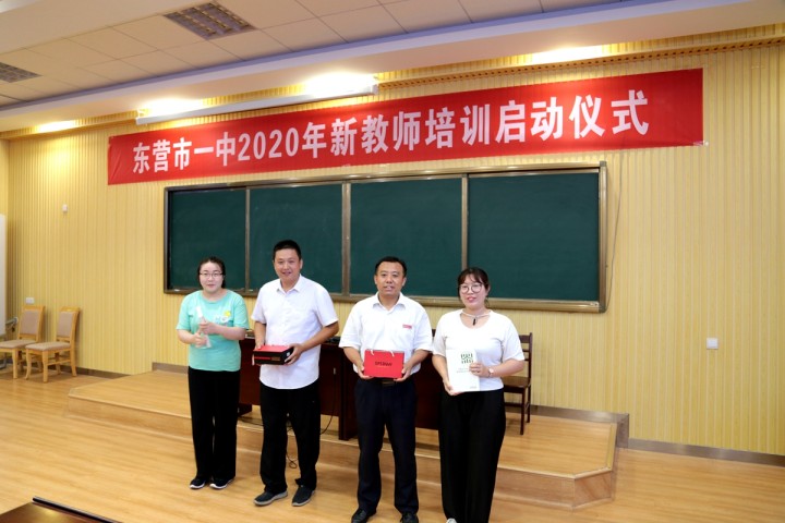史本泉校长在培训中首先代表学校全体师生向新入职教师表示热烈欢迎,随后就“高考的认识、教师的发展、良好师生关系的建立、校园文化建设”等谈了看法和要求。董玉奎副校长在动员讲话中,勉励新教师要爱教育、爱学校、爱学生,勤学习、勤思考、勤读书,以饱满的热情和良好的职业素养创造佳绩。会上,教务处马占武主任、教科室刘永信主任等就培训计划和新老教师师徒结对情况作了说明。担任师傅的老教师向新教师赠送了书籍。
