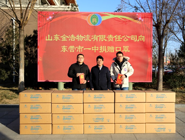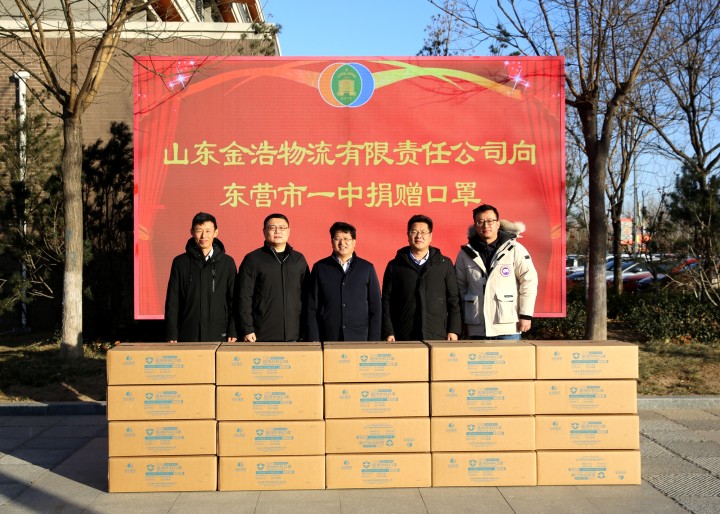 1月7日下午,山东金浩物流有限责任公司王文东总经理一行向东营市一中捐赠口罩2万个,以支持学校抗击新冠病毒肺炎疫情。市一中党委书记、校长史本泉代表学校接受了捐赠。副校长李士刚参加捐赠仪式。