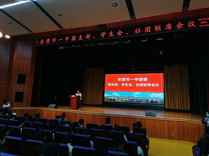 3月6日下午,共青团东营市第一中学委员会在道德讲堂召开团支部、学生会、社团联席会议。校团委丁子勇书记、校团委教工团支部武海静副书记、社团指导教师胡爱萍老师、毕玲玉老师出席会议,各班团支书、学生会代表、社团代表共计245人参加会议。