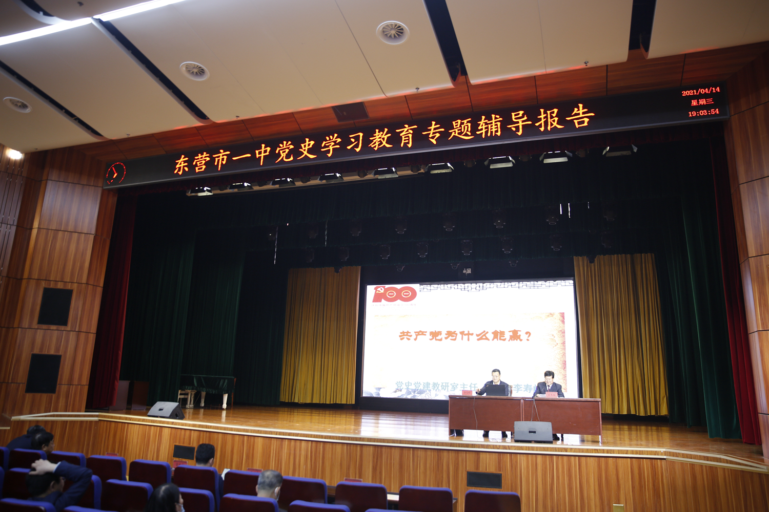 会议邀请东营市委党校党史党建教研室主任、教授李寿峰作专题辅导报告。学校党委书记、校长史本泉主持会议,全体党员、入党积极分子、历史老师、各年级部学科组长聆听了报告。