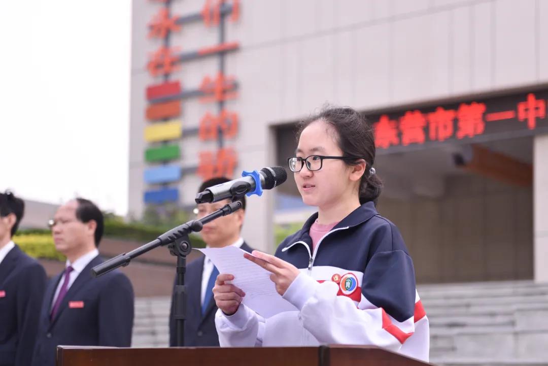 崔业雪同学代表十八岁学子向学校、老师和父母表达了深深的感恩之情,号召同学们热爱生活,心怀感恩,拼搏进取,做有理想、有信念、有奋斗、有贡献的时代青年。
