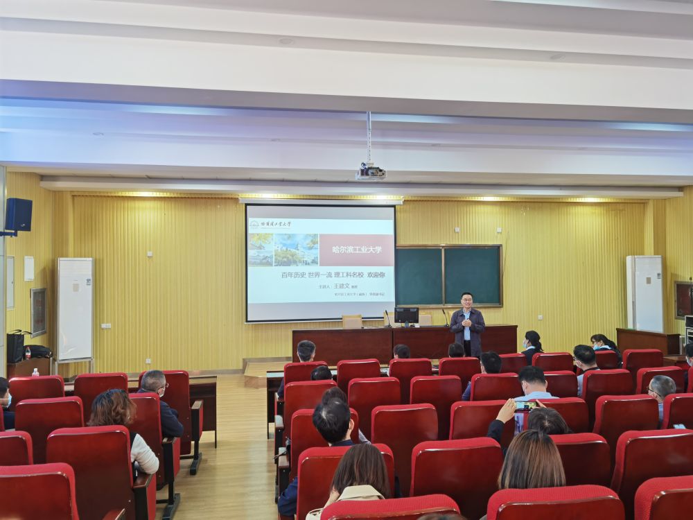 哈工大党委副书记王建文教授在阶梯教室向部分高三学生家长作了专题报告,及时让学生家长了解了哈工大的百年历史以及目前的教育教学发展情况。