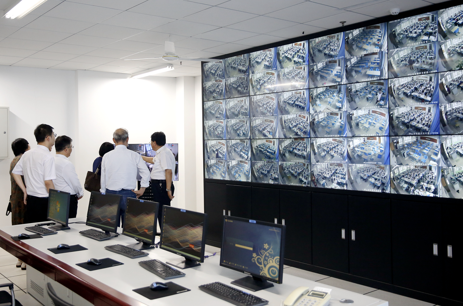 张琳一行走进学校监控室、考务室、保密室,听取了史本泉校长关于考点设置情况的简要汇报。张琳对本次考点设置工作非常满意。他指出,东营市一中考点前期准备工作全面细致,规范有序,积极为全体考生创设良好安全的考试环境,接下来,各部门更要全力做好各项考务保障工作,确保高考平安、顺利、圆满完成。