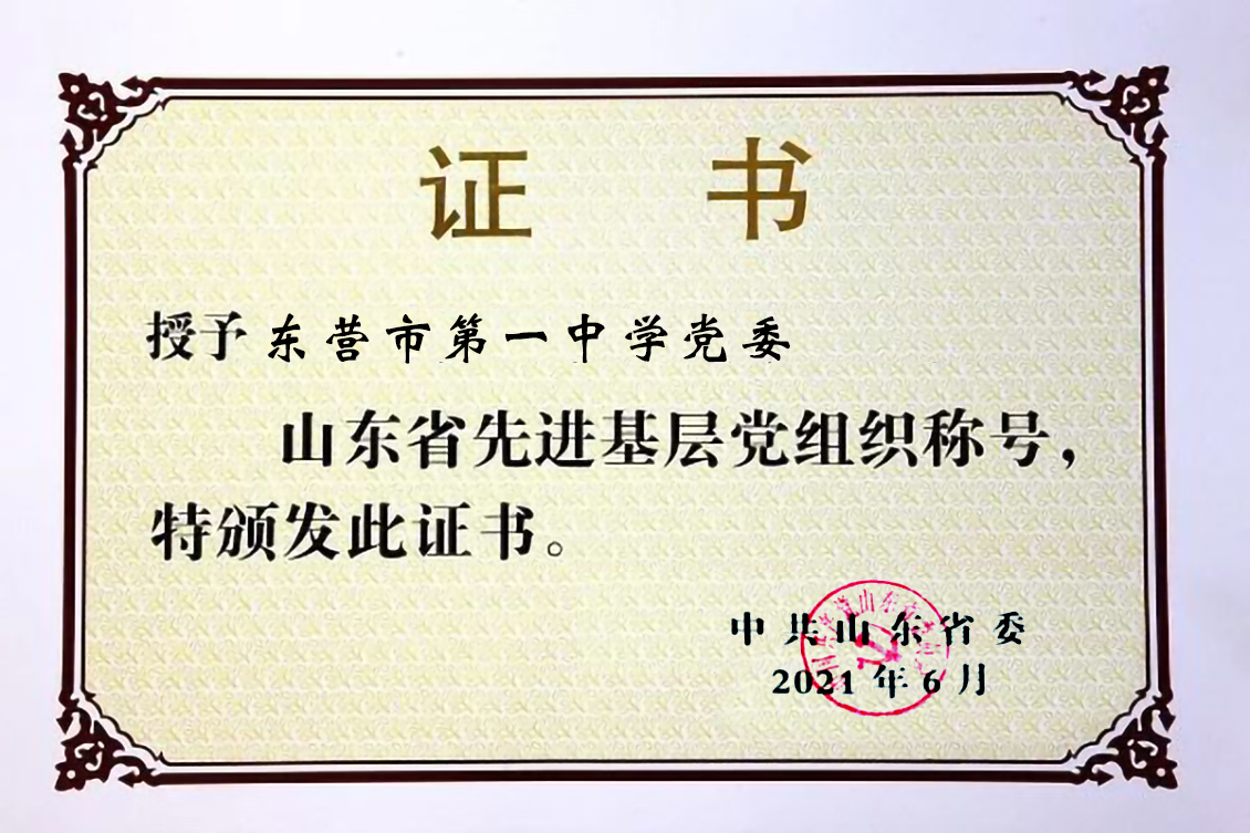 在中国共产党百年华诞之际,在全省“两优一先”表彰中,市一中党委被山东省委表彰为山东省先进基层党组织。这是今年继获得市委教育工委先进基层党组织、党建特色品牌学校,山东省“一校一品”党建品牌示范校等党建称号后,获得的又一项省级党建荣誉。