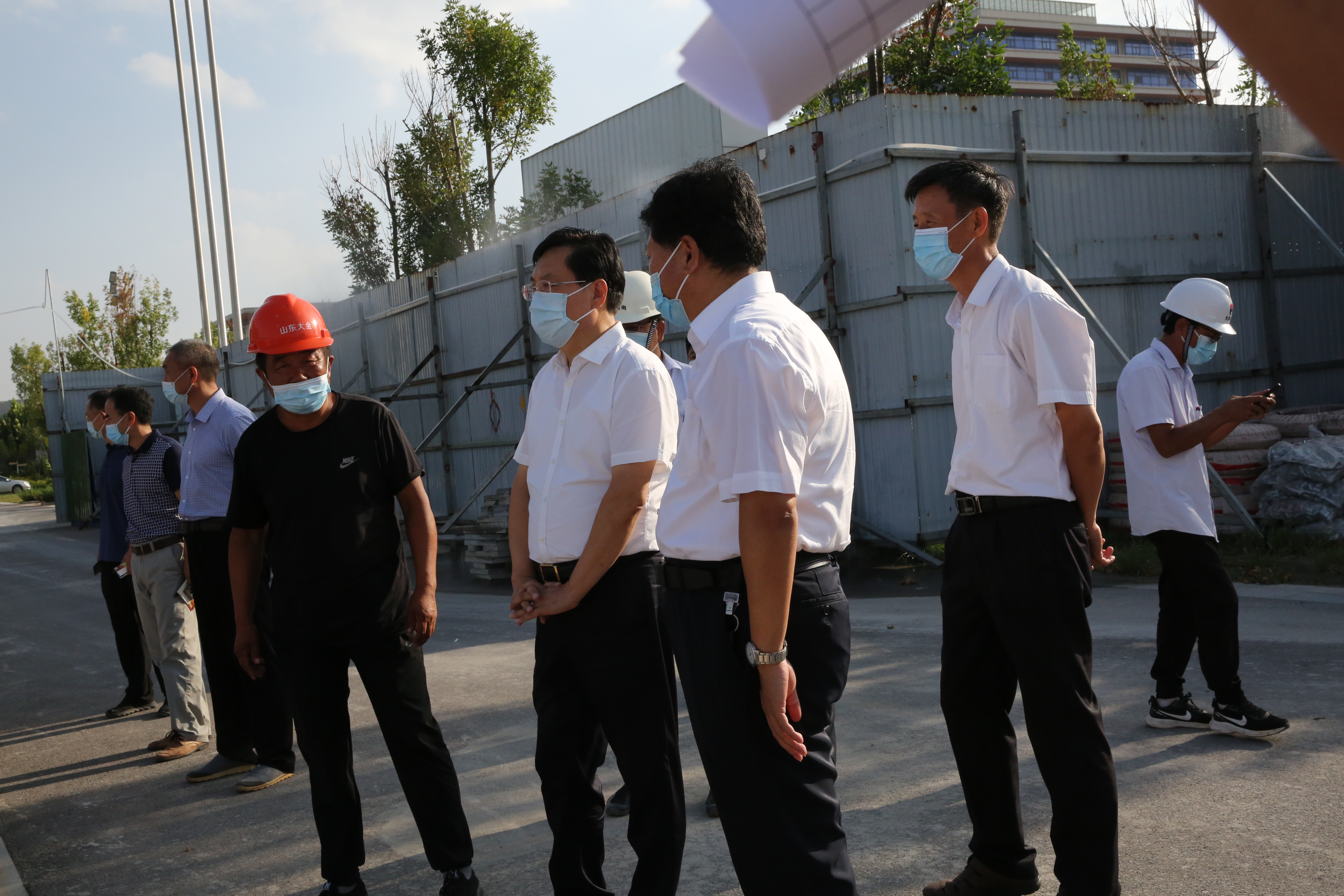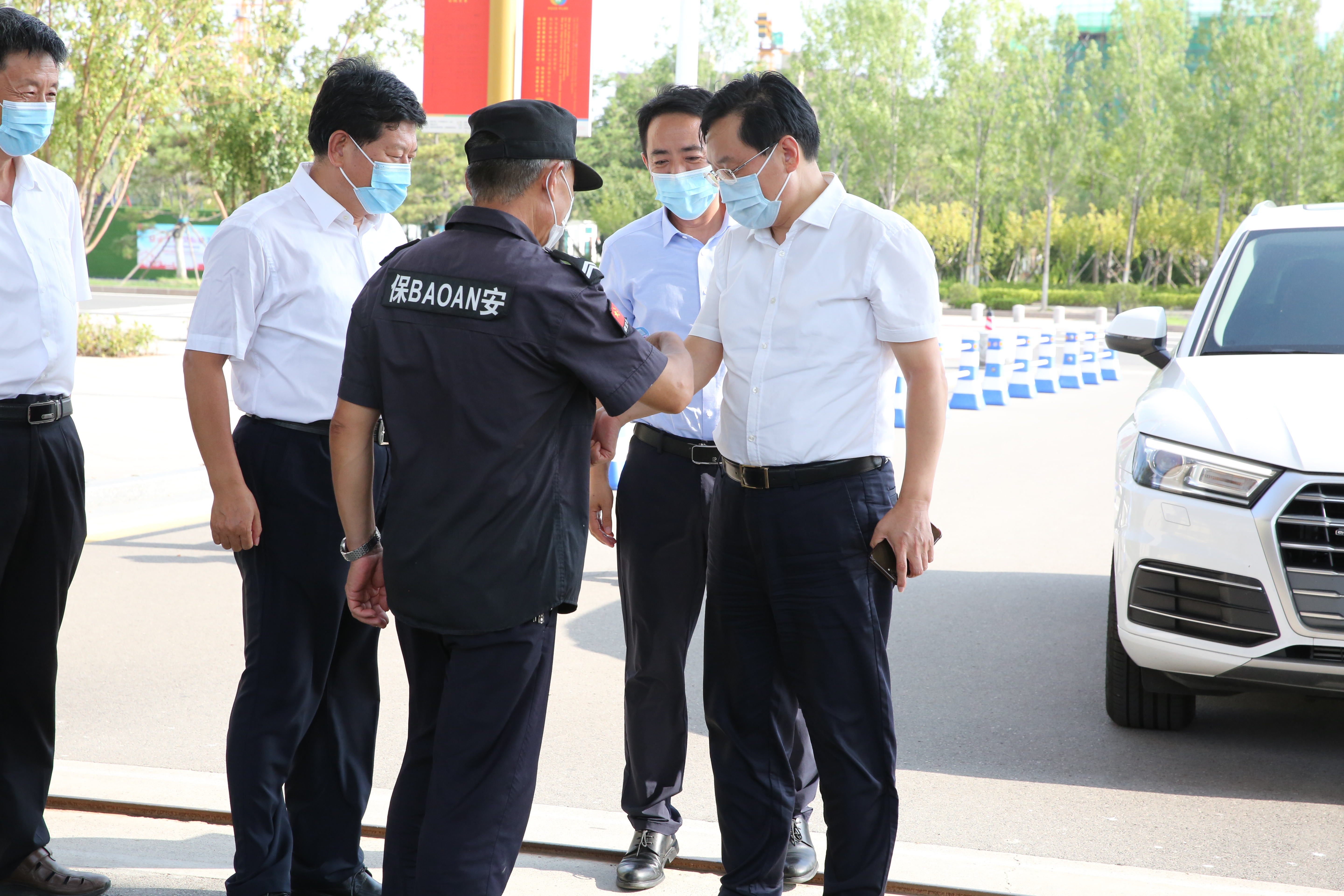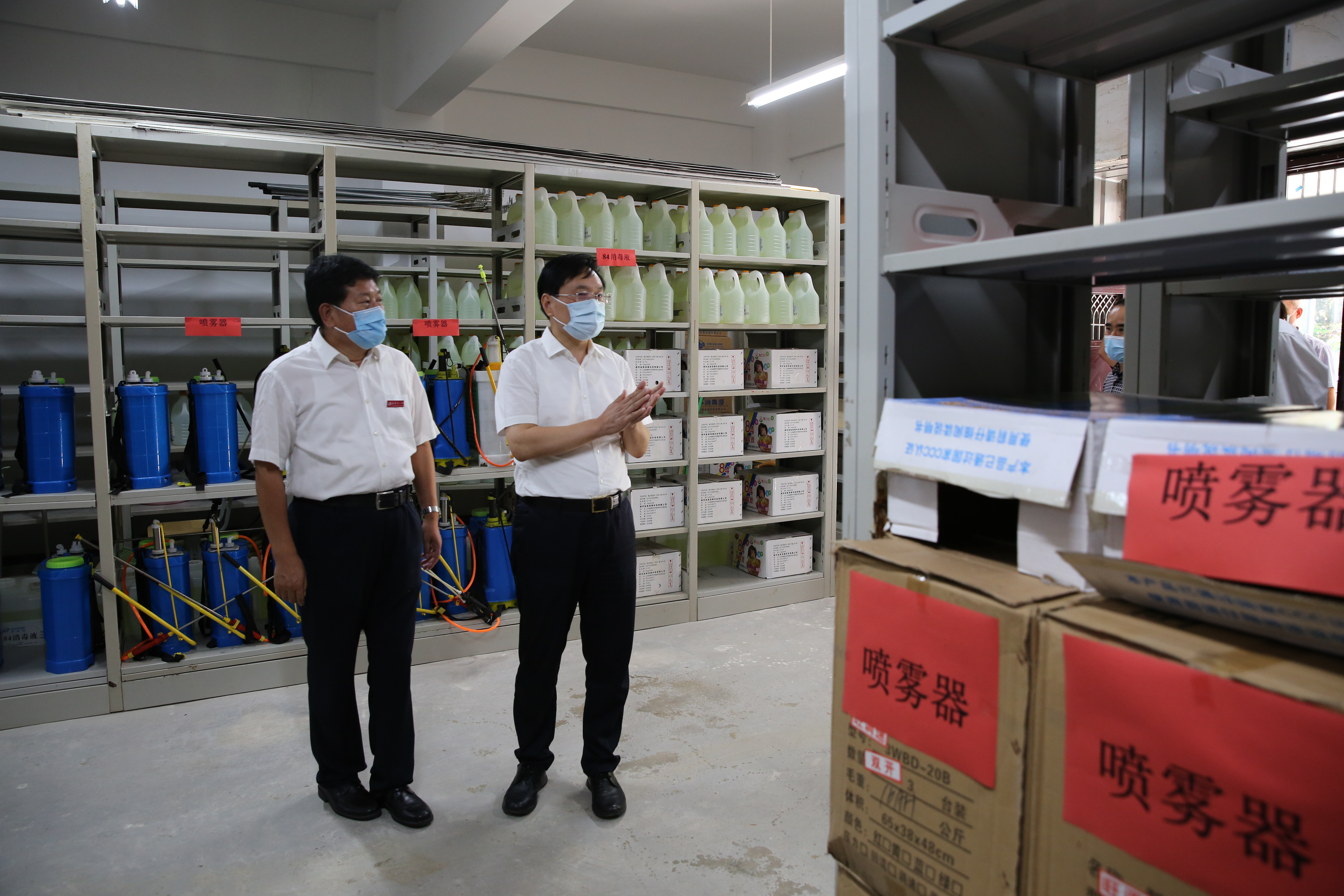 孙红军局长在史本泉校长的陪同下,实地察看了入校体温检测点、物资储备室、留观室、教室和食堂等场所,详细了解了学校防疫物资储备、食堂就餐安排等有关情况,参观了学校党史长廊,并到建设工地了解学校游泳馆建设情况。