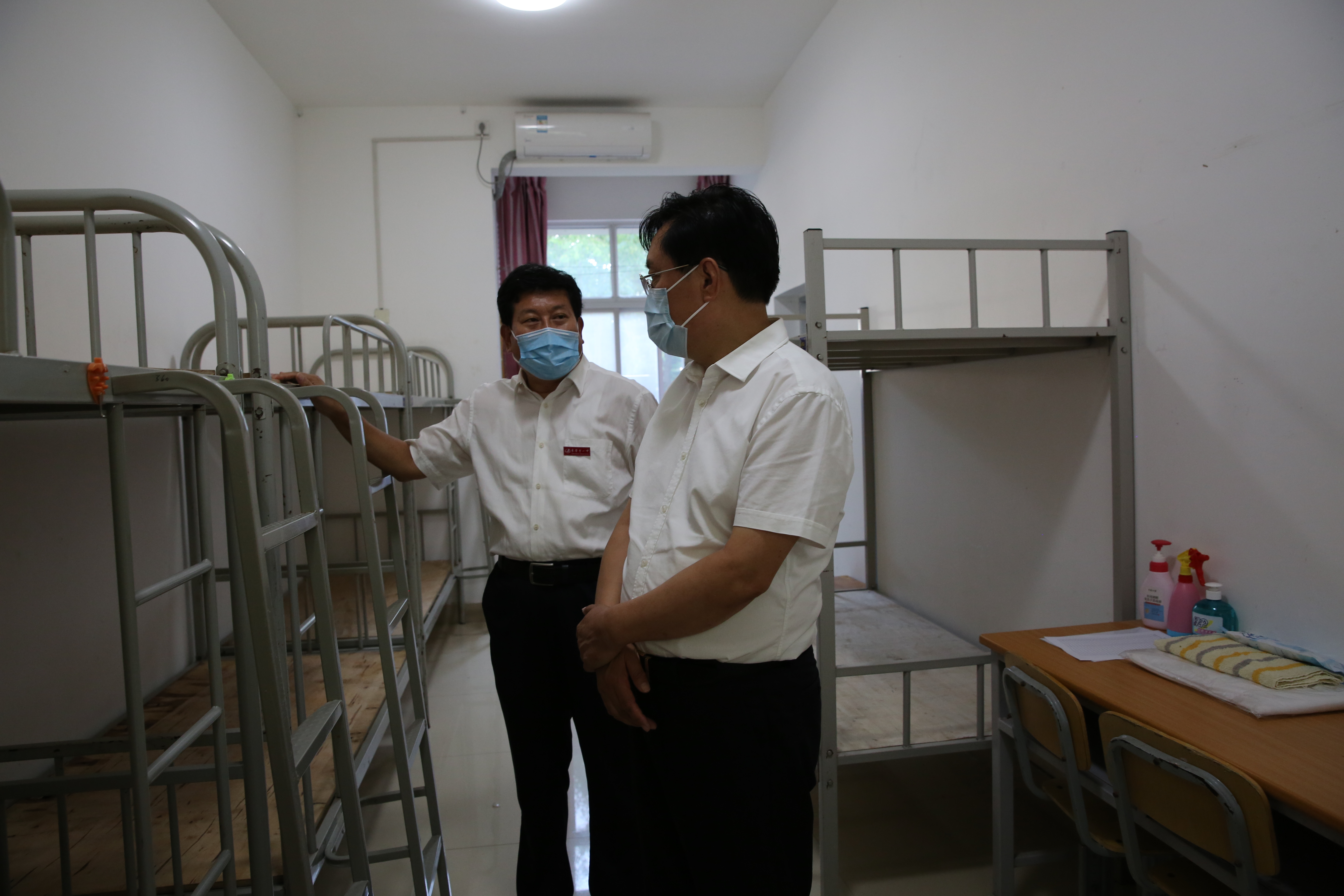8月24日,市教育局局长孙红军到市一中检查指导学校疫情防控工作及秋季开学准备工作。