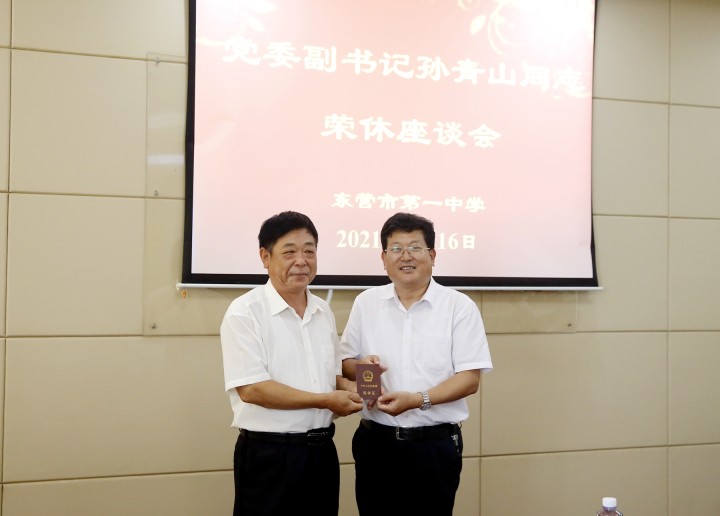 8月16日上午,一场温馨而隆重的欢送仪式在市一中第一会议室举行。学校领导及各部门中层正职齐聚一堂,热烈欢送学校党委副书记孙青山同志光荣退休。仪式由副校长李士刚主持。